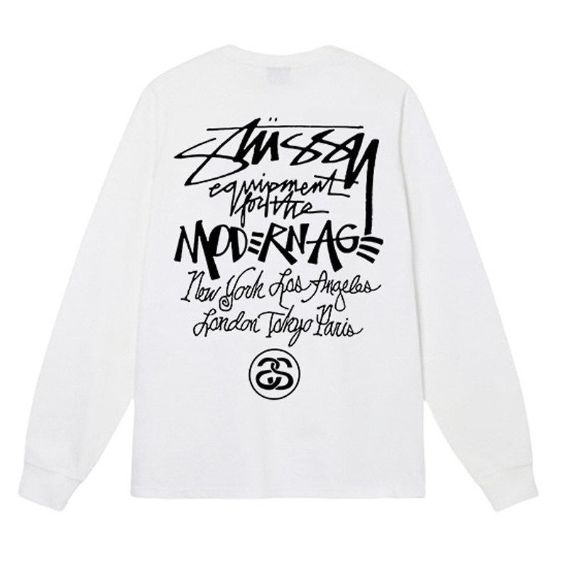 潮牌斯图西STU长袖t恤纯棉重磅300g高版本现代主义基础巡游款亲子