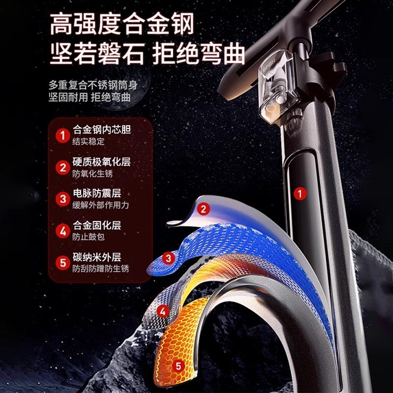 得力新型高压打气筒自行车家用通用电动瓶公路车充气针嘴小轿车用