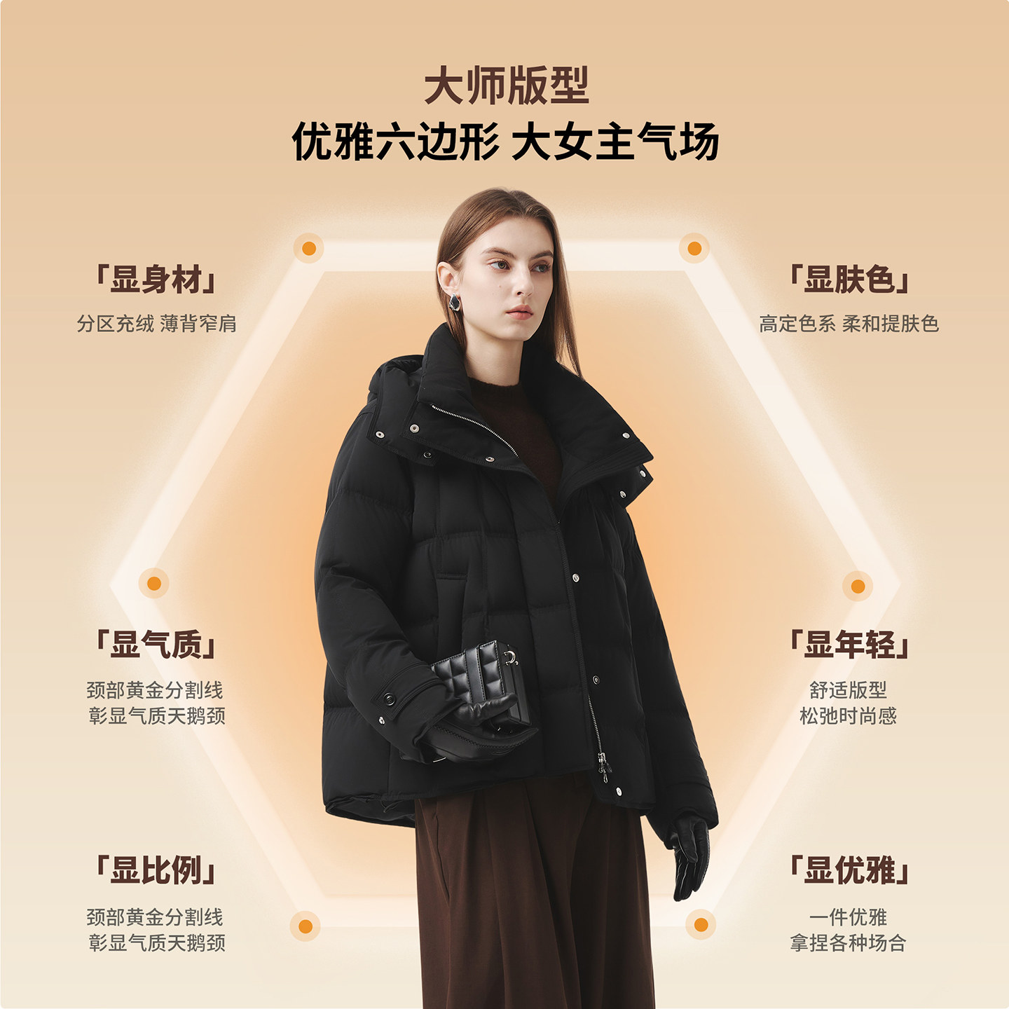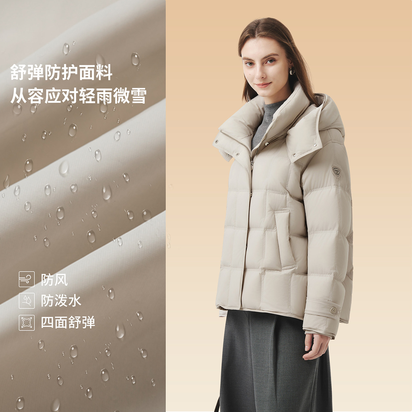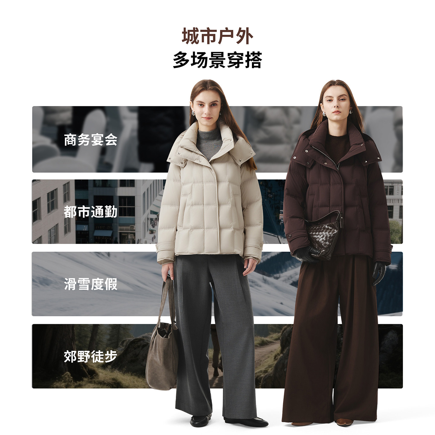 【鞠婧祎同款】鸭鸭2025年冬新款百搭短款女士纯色立领羽绒服外套