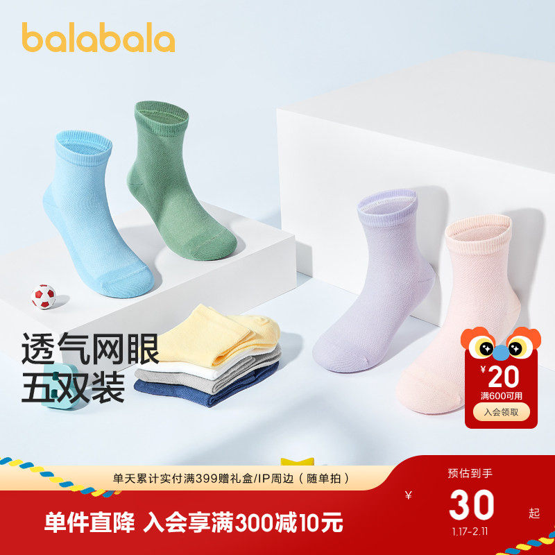 巴拉巴拉儿童袜子夏装网眼儿童学生袜透气男童女童小童宝宝五双装