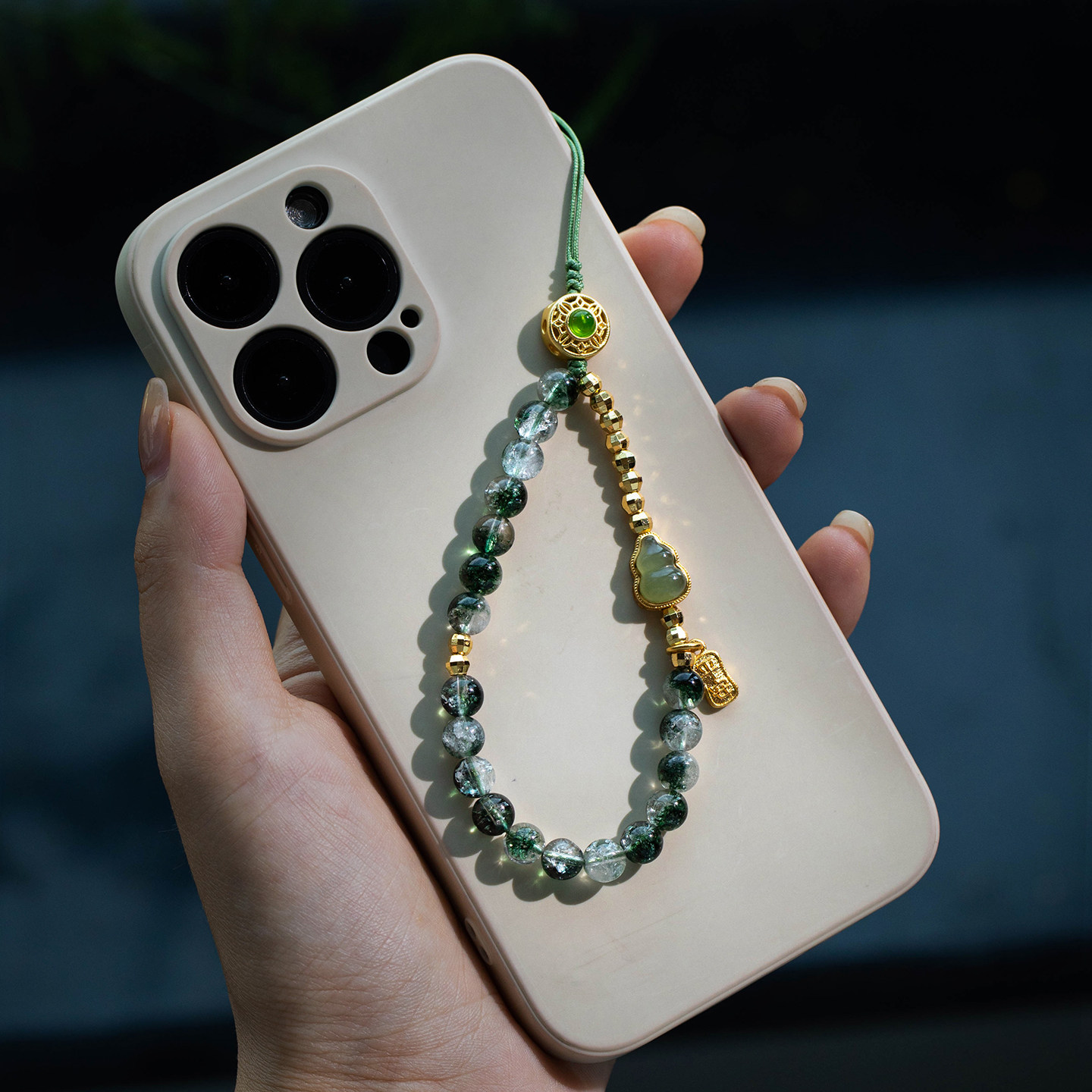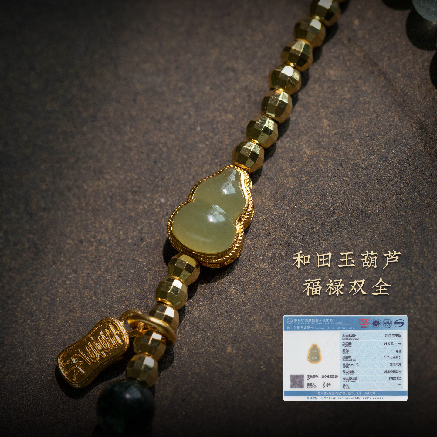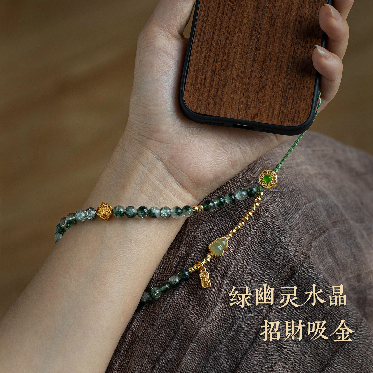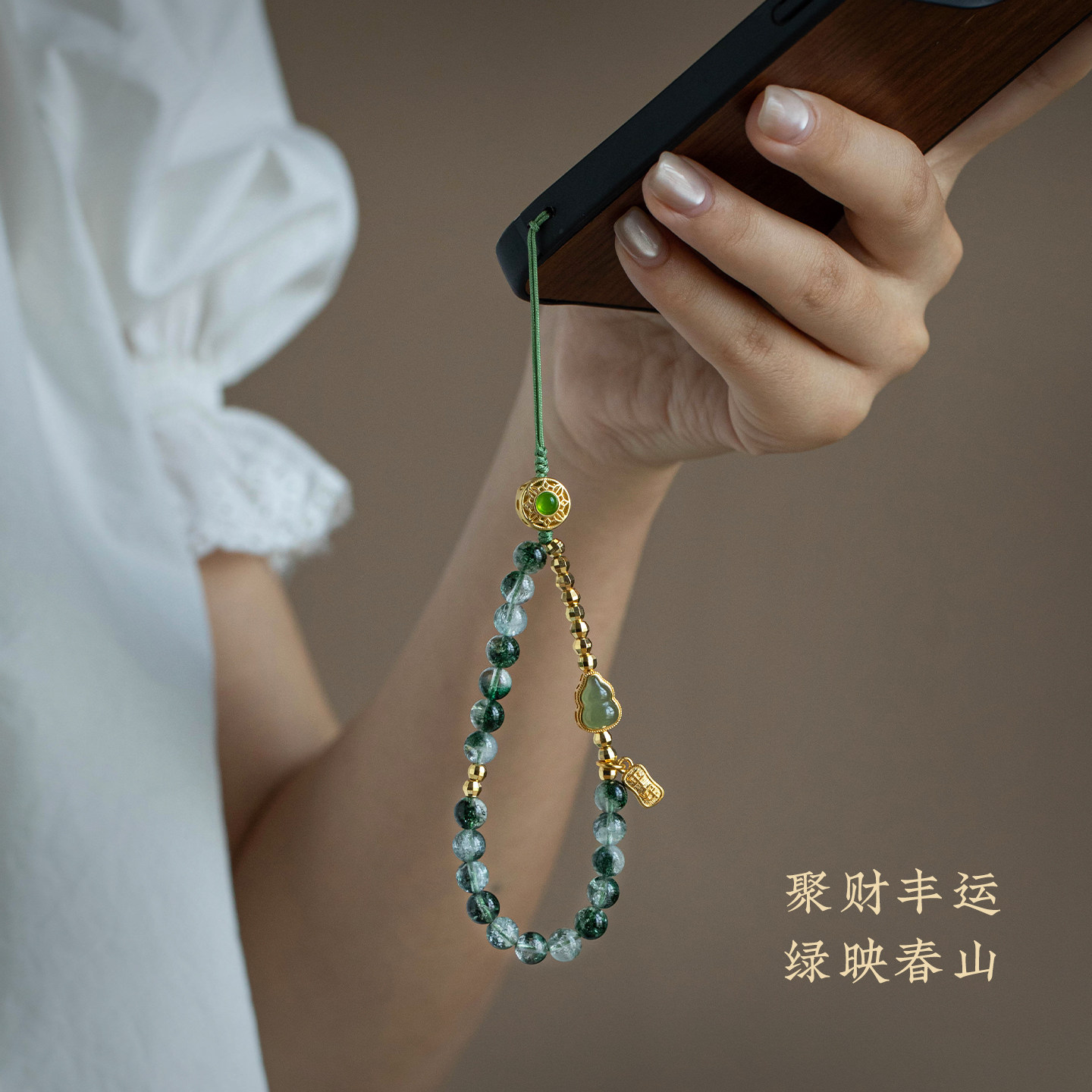 大善堂天然珍珠车钥匙挂件精致手腕款马年钥匙扣和田玉圆珠钥匙链