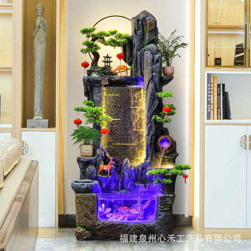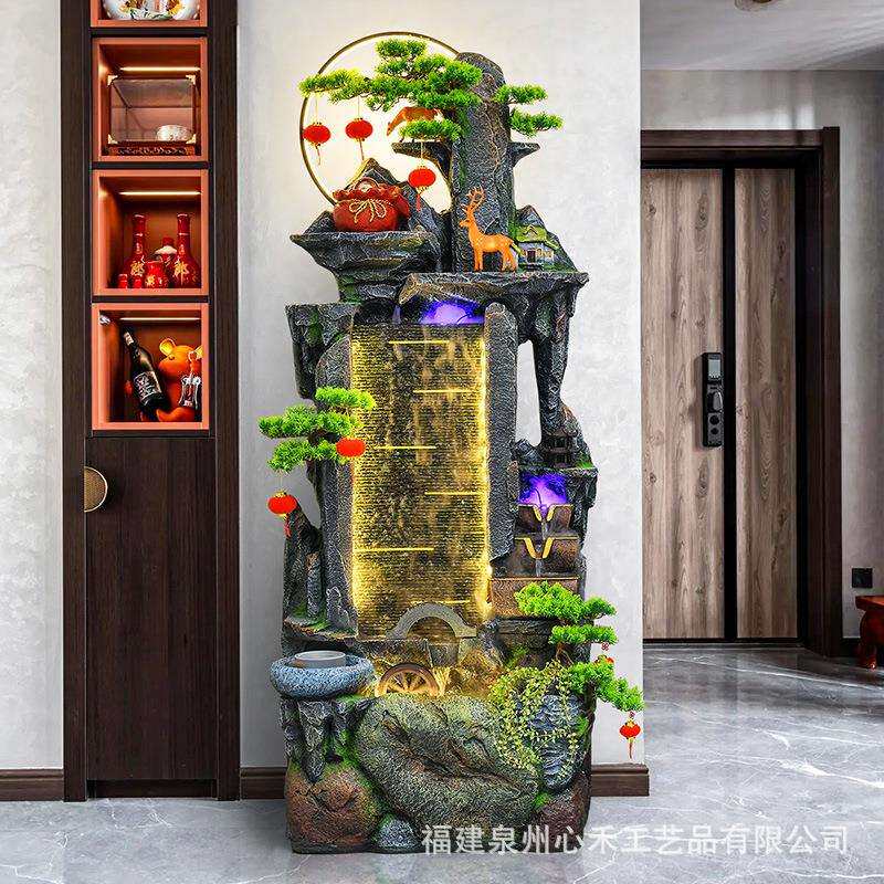 新中式假山喷泉流水招财摆件客厅玄关落地庭院水景观办公室装饰品