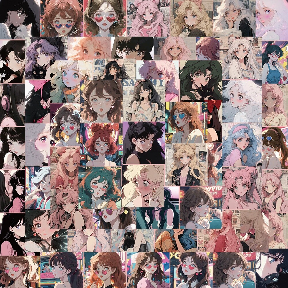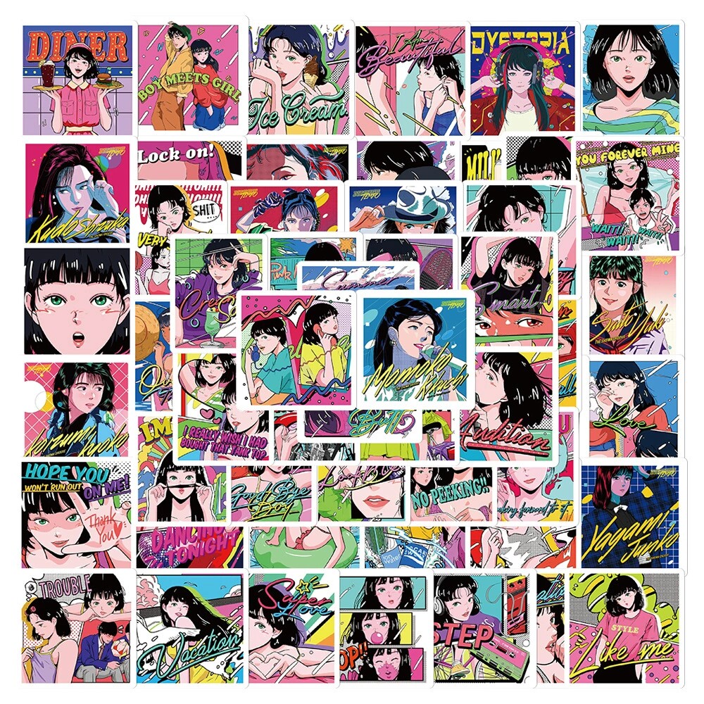 日系插画原宿少女贴纸ins风复古蒸汽行李箱贴涂鸦装饰防水不重复