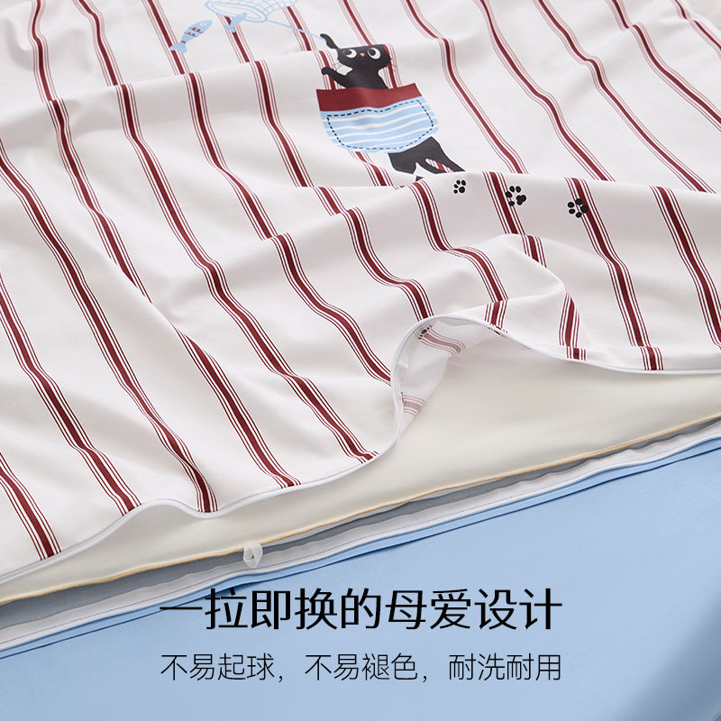 无印良品全棉四件套学生宿舍纯棉卡通儿童被套床单三件套床上用品