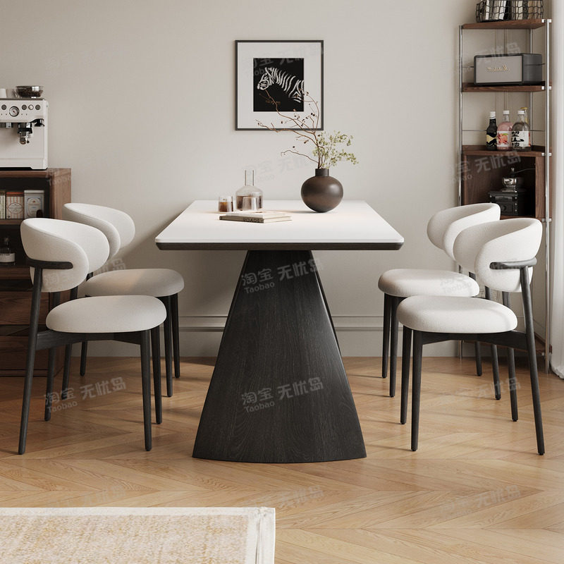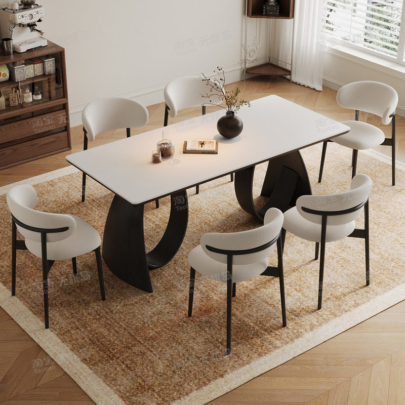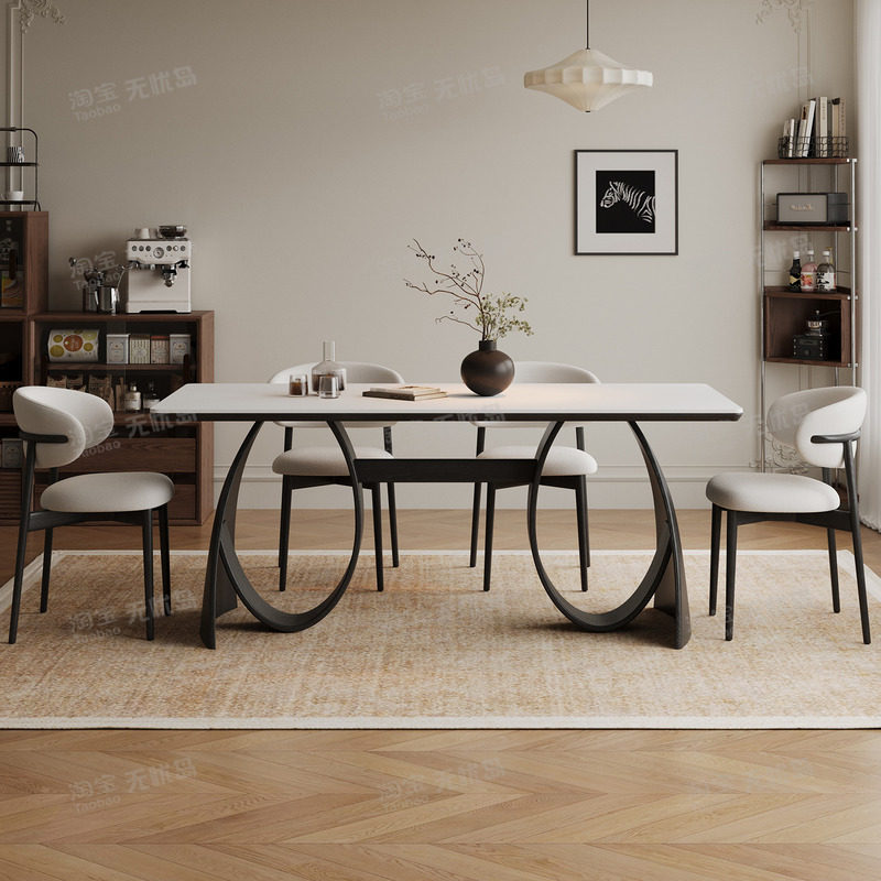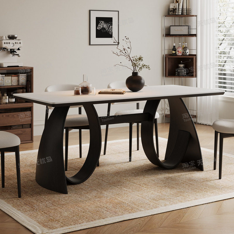 中古风实木岩板餐桌2026新款家用设计师法式复古小户型黑色餐桌