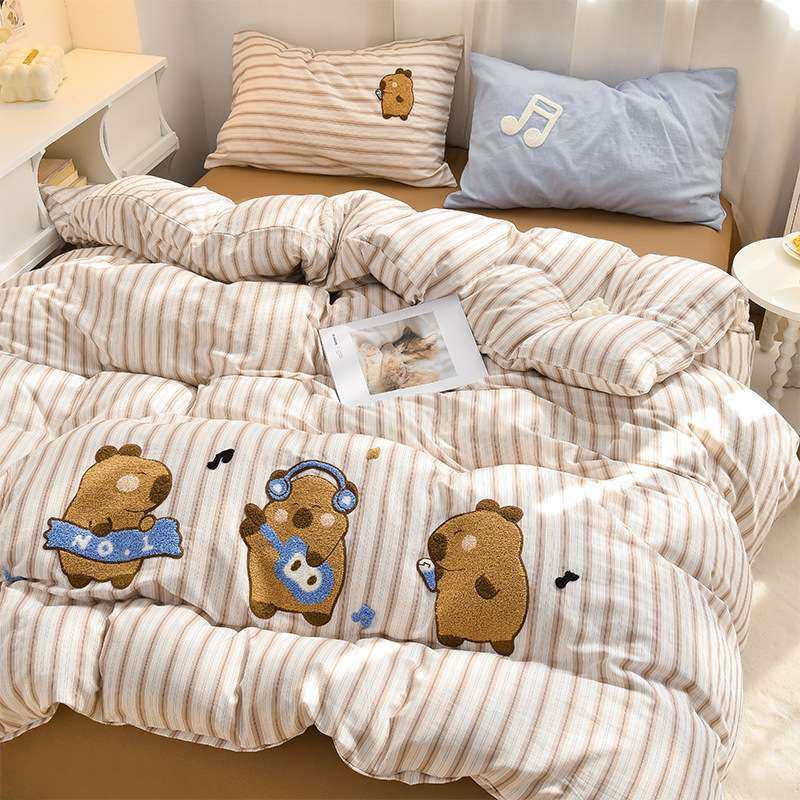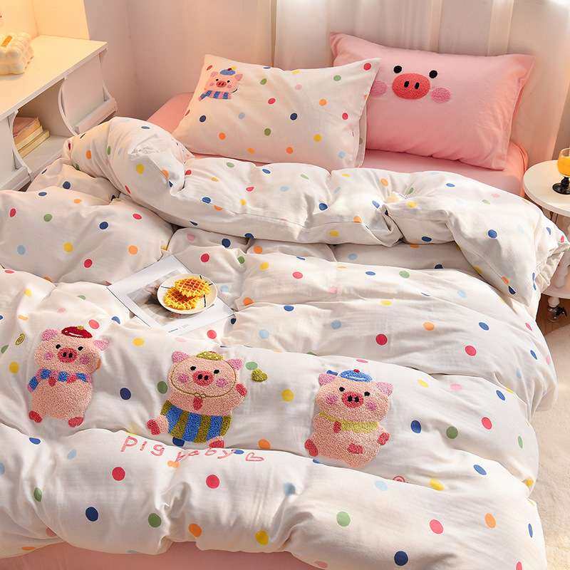 A类40支全棉双层纱毛巾绣四件套100全棉儿童被套床单笠三件套床品