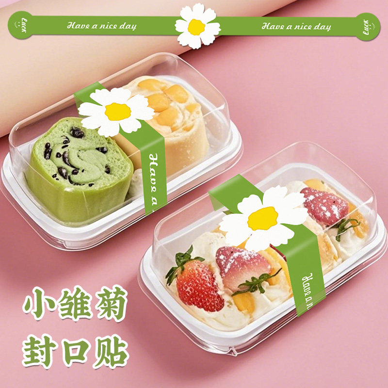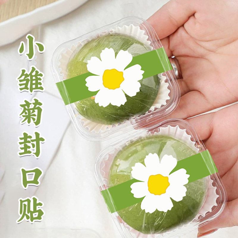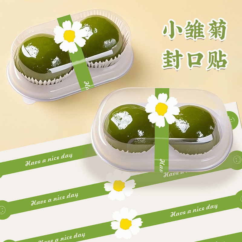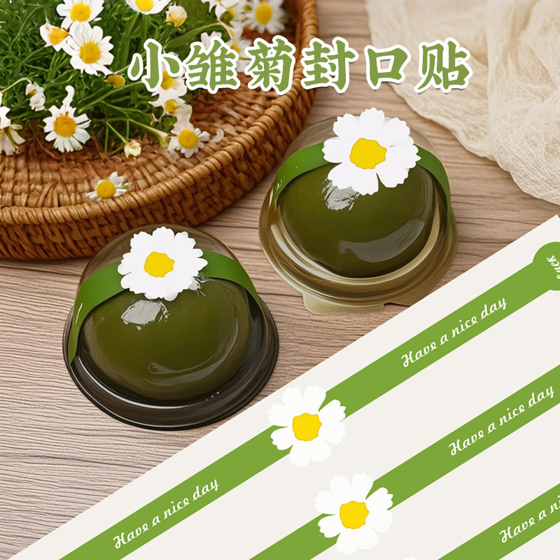 春天小雏菊长条烘焙贴纸定制绿豆糕蛋黄酥雪梅娘包装盒子装饰封条青团清明果艾草糍纯手工制作自粘不干胶标签