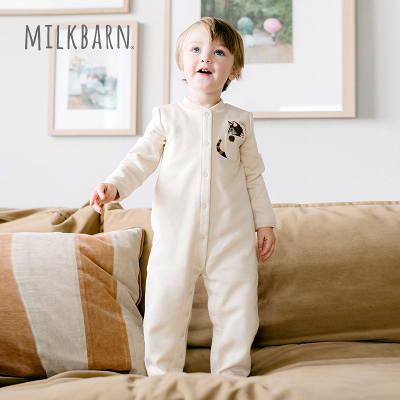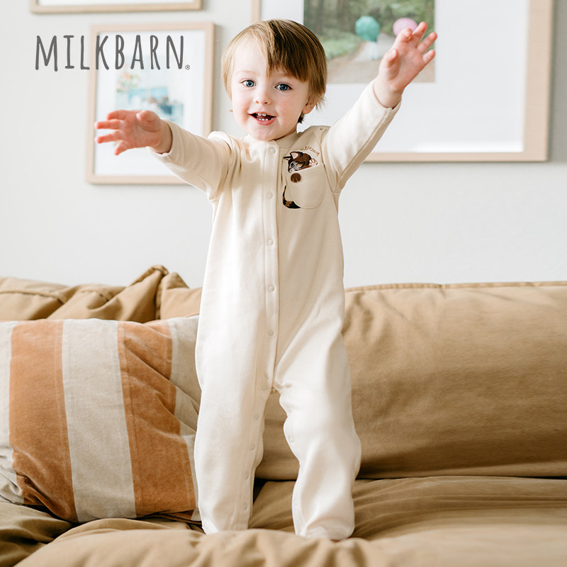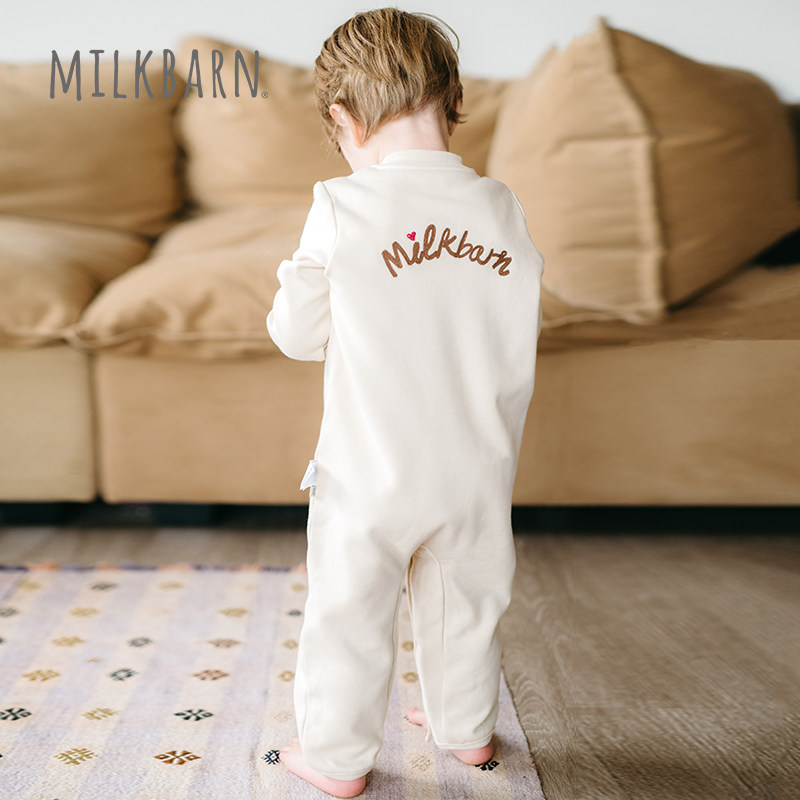 Milkbarn2025秋季新品婴儿连体衣长袖宝宝哈衣爬爬服简约休闲童装