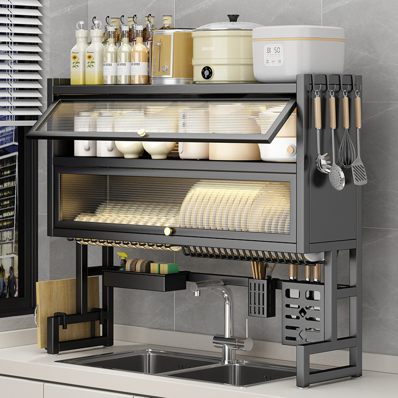 厨房水槽置物架洗碗槽台面防尘碗柜收纳多功能餐具储物沥水架碗碟