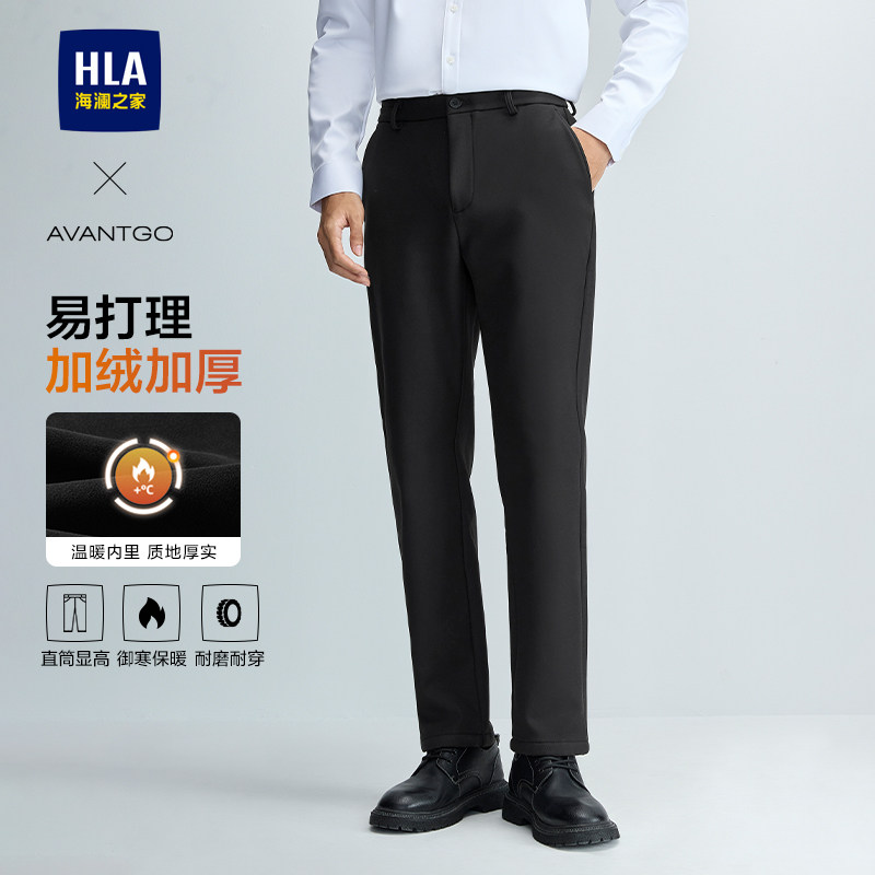HLA/海澜之家轻商务休闲裤秋冬季新款加绒加厚可选大码直筒长裤男