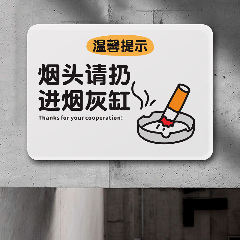 烟头请扔进烟灰缸吸烟区指示牌禁止吸烟请勿吸烟公共场所禁烟提醒