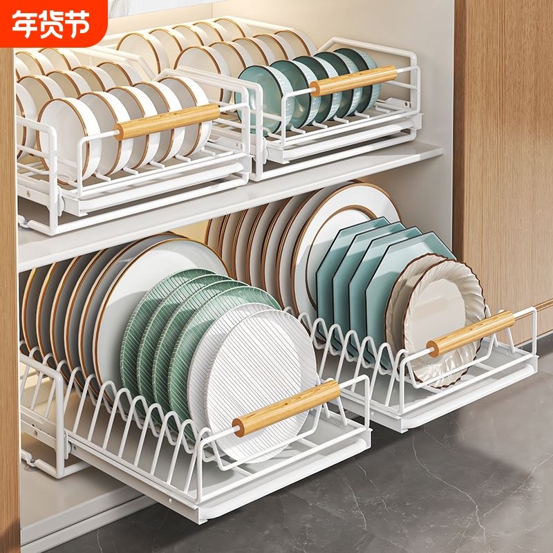 厨房碗碟收纳架置物架抽屉式拉篮抽拉碗篮沥水碗架分层内置橱柜