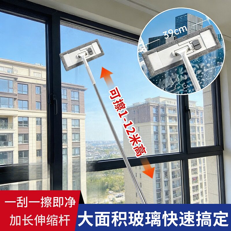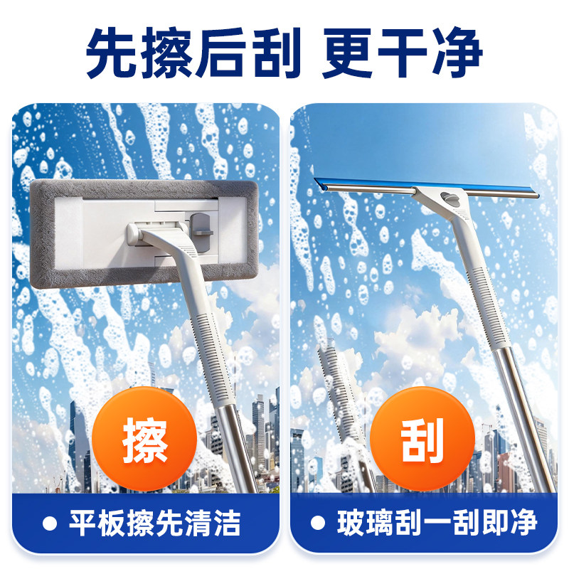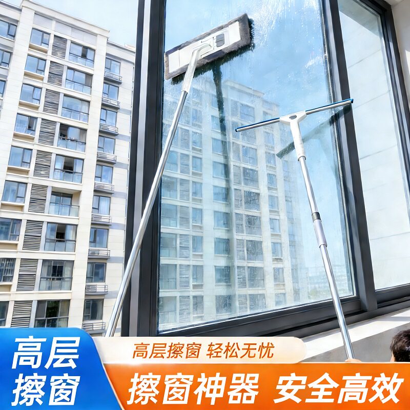 新款擦玻璃神器高层窗外专用加长伸缩杆拖把双面擦刮水器清洁窗户