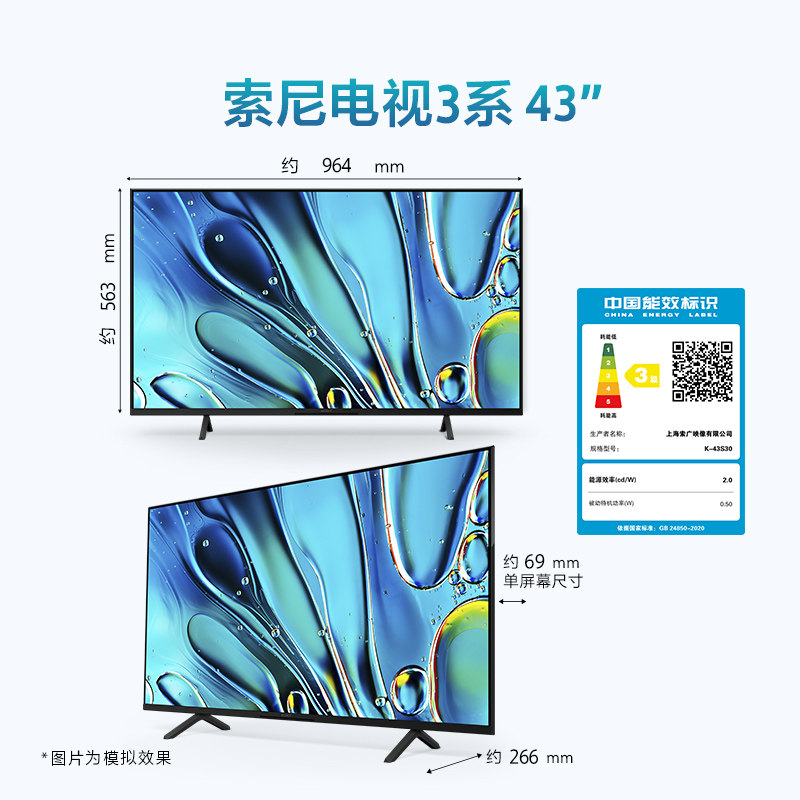 索尼3系电视 K-43S30 43英寸 4K高清智能网络液晶平板高画质卧室