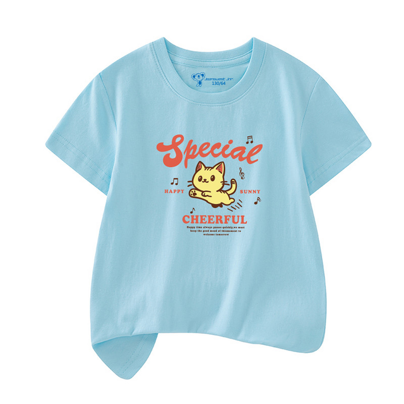 真维斯短袖T恤纯棉透气女童猫咪印花合身