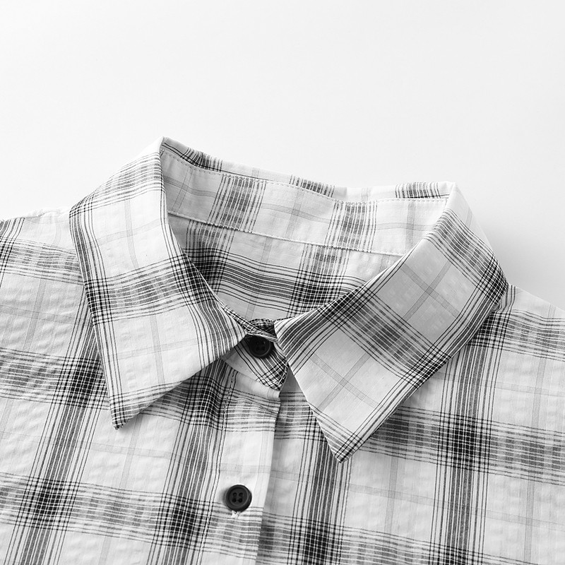 eihey诶嘿复古格纹收腰短袖衬衫日系学院风休闲翻领修身短款上衣