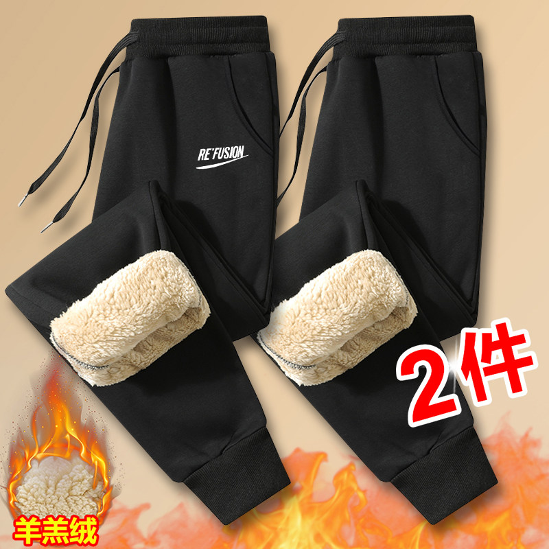 羊羔绒裤子男2025新款冬季加绒加厚卫裤外穿保暖棉裤休闲运动长裤