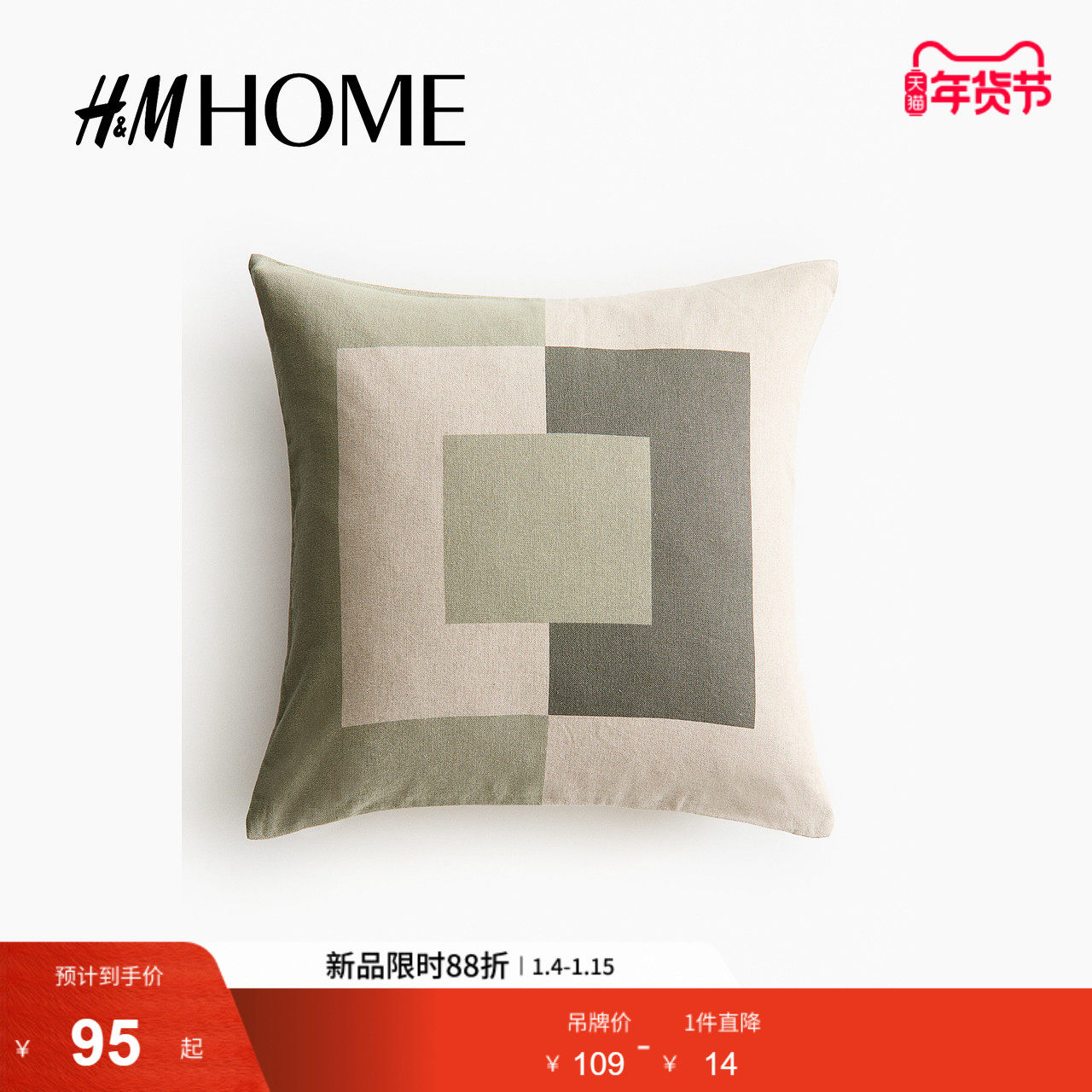 HM HOME家居用品冬季亚麻混纺靠垫套1312129