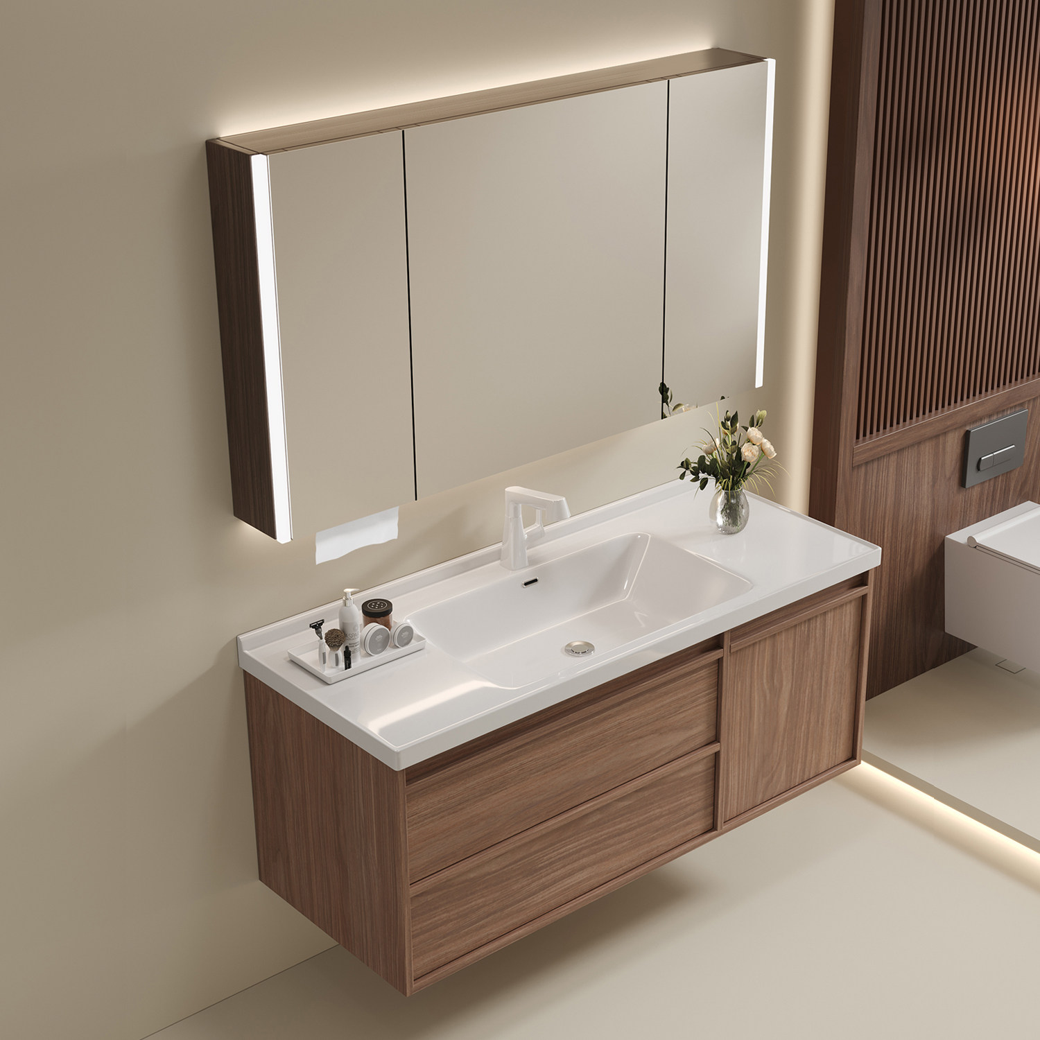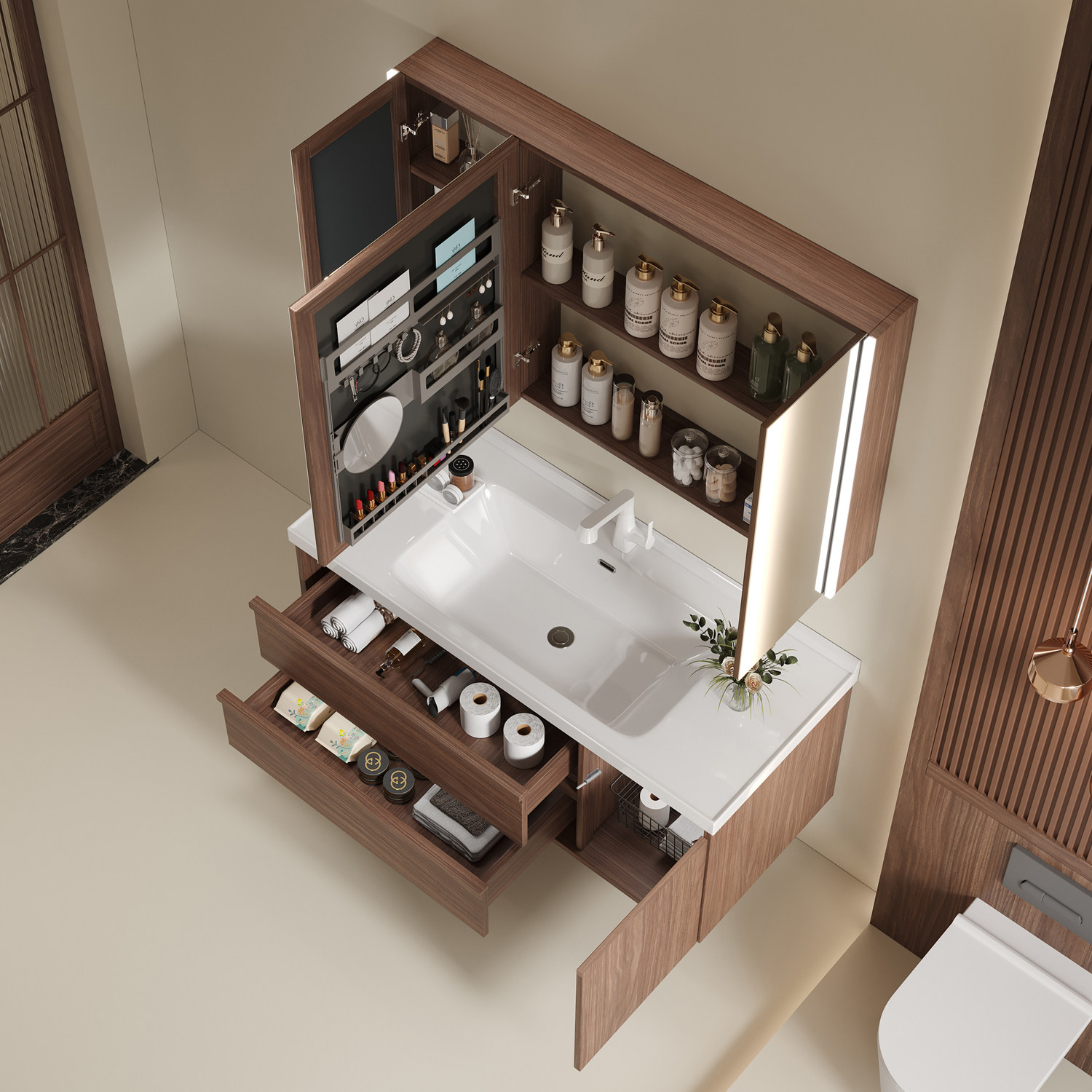 美伦艾特爆款日式大收纳浴室柜组合抽屉拉篮洗漱台洗脸陶瓷一体盆