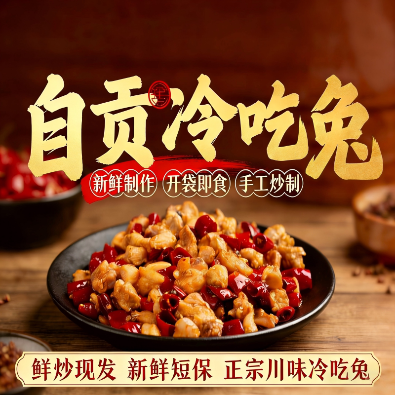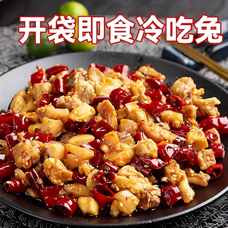自贡冷吃兔香辣兔肉丁四川特产零食兔子肉即食兔丁网红小吃熟食