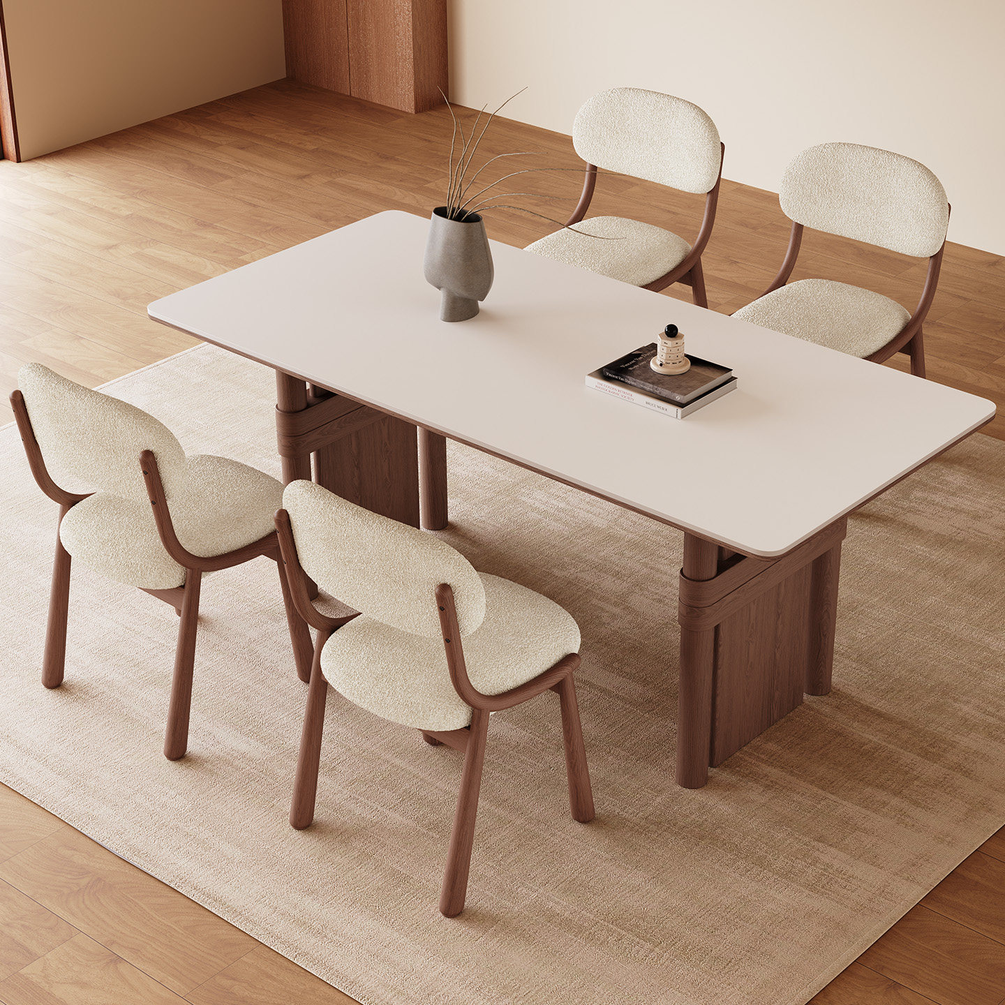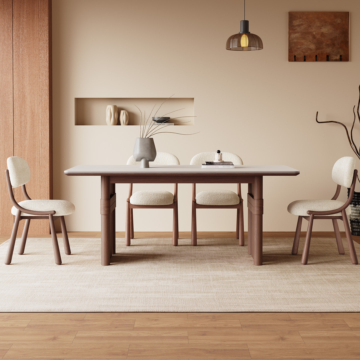 中古风实木餐桌广东佛山 2025 新款家用白蜡木长方形白色岩板餐桌