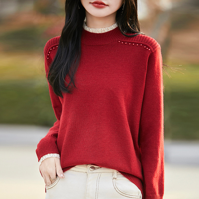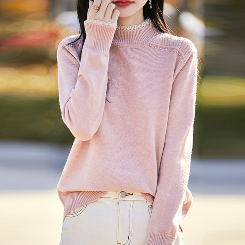 撤标撤柜(A)春秋款半高领钉珠针织打底衫女洋气内搭大码女装毛衣