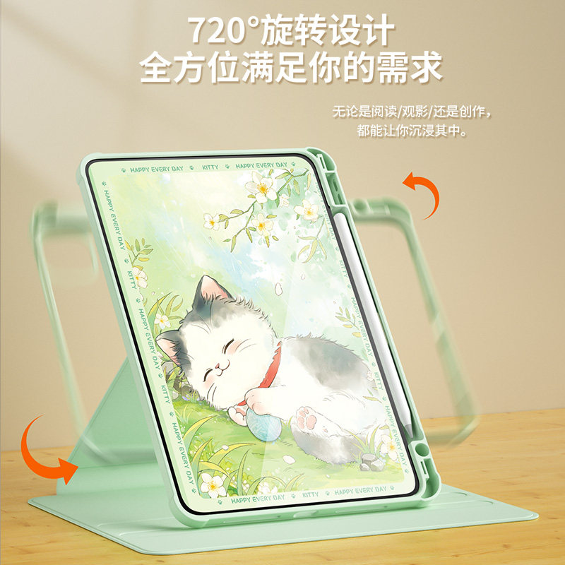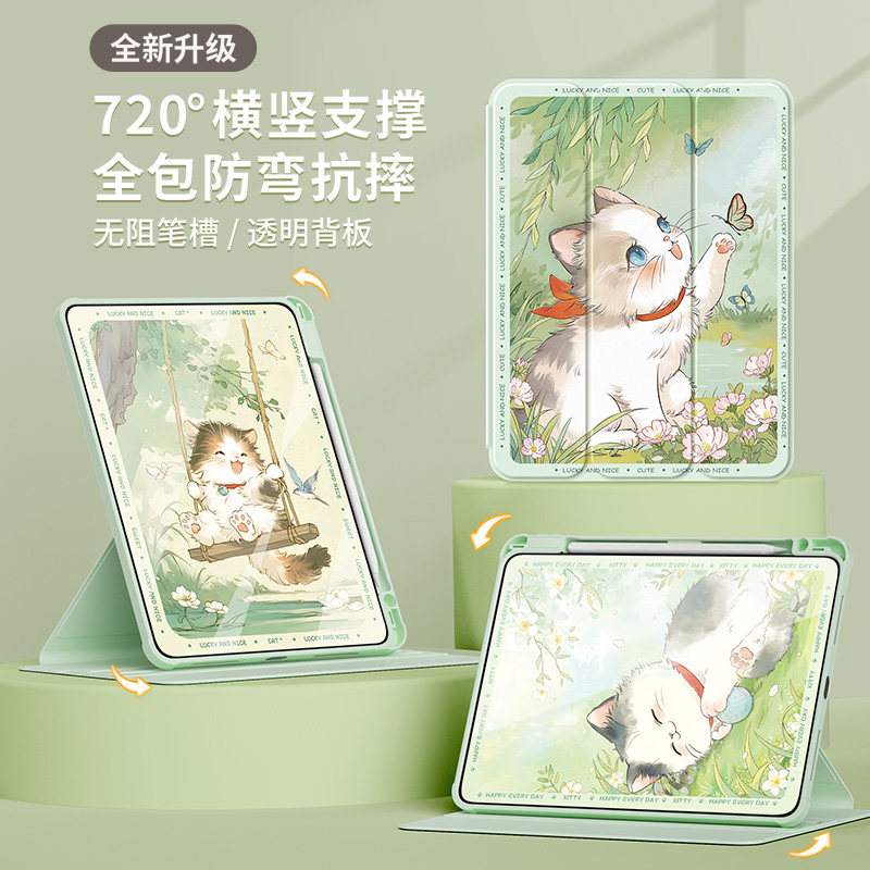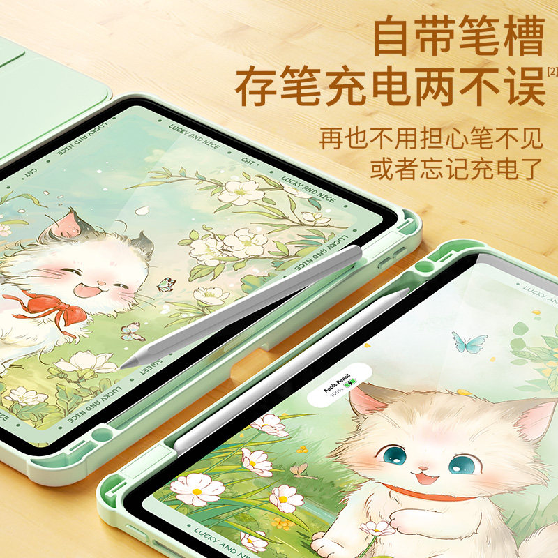 适用ipadair保护套2024新款第11代平板壳Pro11带笔槽全包mini7/6防摔迷你5/4亚克力2021苹果ipad10/9旋转蝶猫