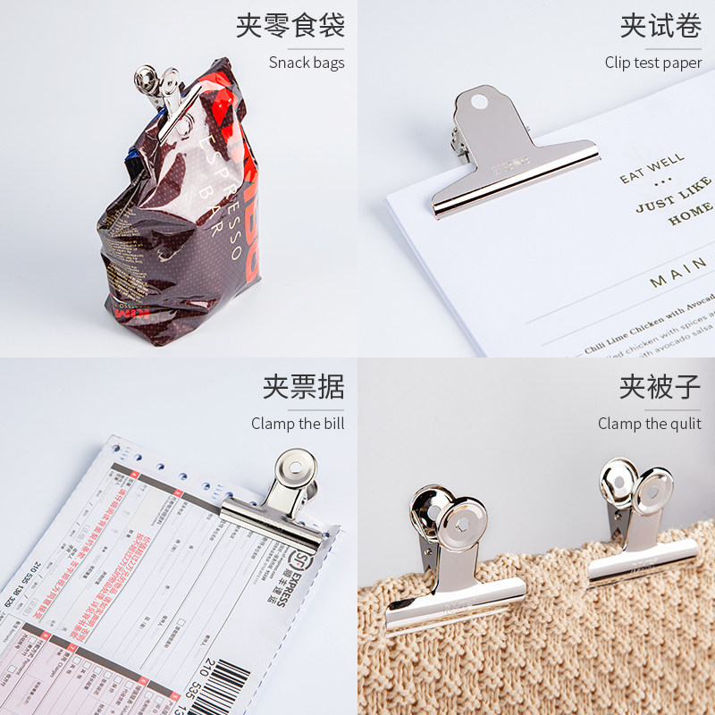 晨光铁夹子固定整理夹铁小号票据夹大号零食封口夹金属办公用品圆形不锈钢山形夹电影飞机票夹凉衣服夹被子的