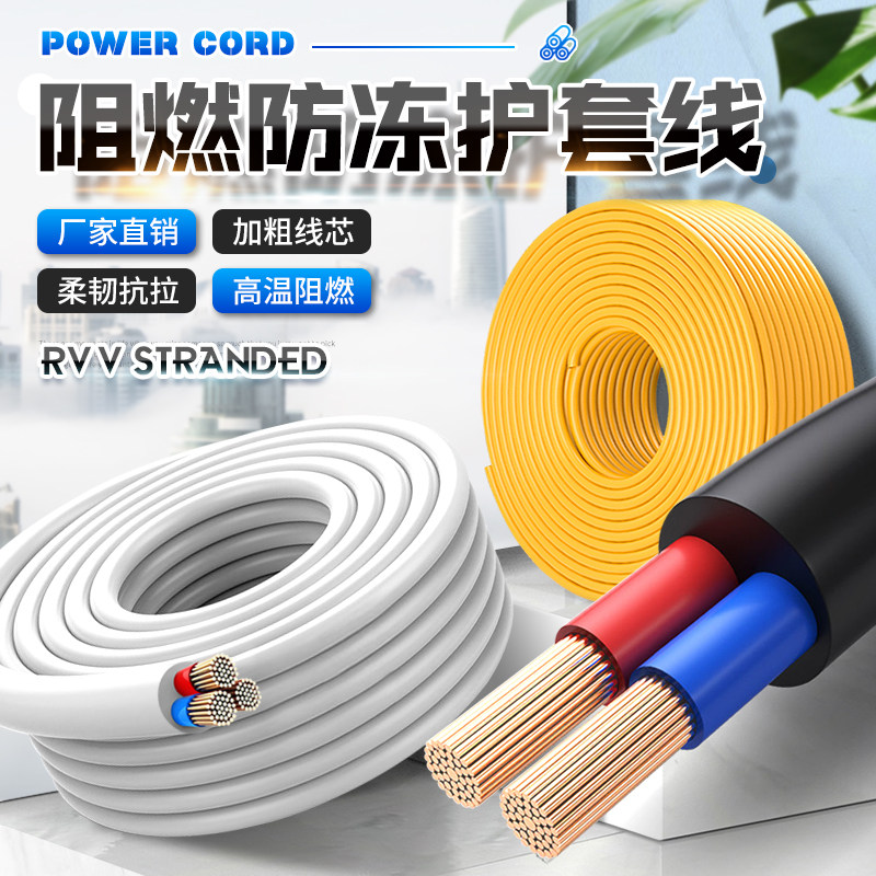国标家用RVV电缆线2芯3芯4芯1.52.546平方户外三相护套电线软线