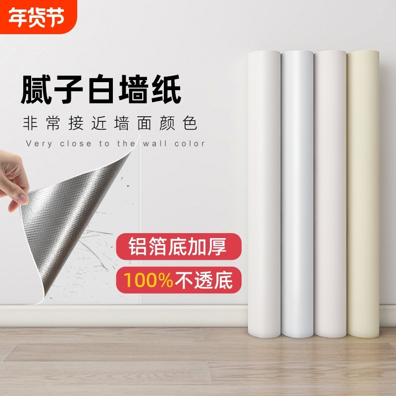 白墙纸自粘防水电视背景墙面壁纸遮丑墙贴纸橱柜厨房房间防油桌面