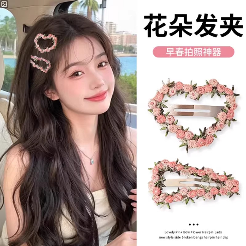 粉色刺绣花朵发夹女2026新款刘海夹侧边夹碎发发卡发饰五角星蕾丝