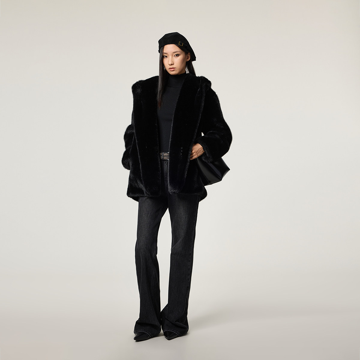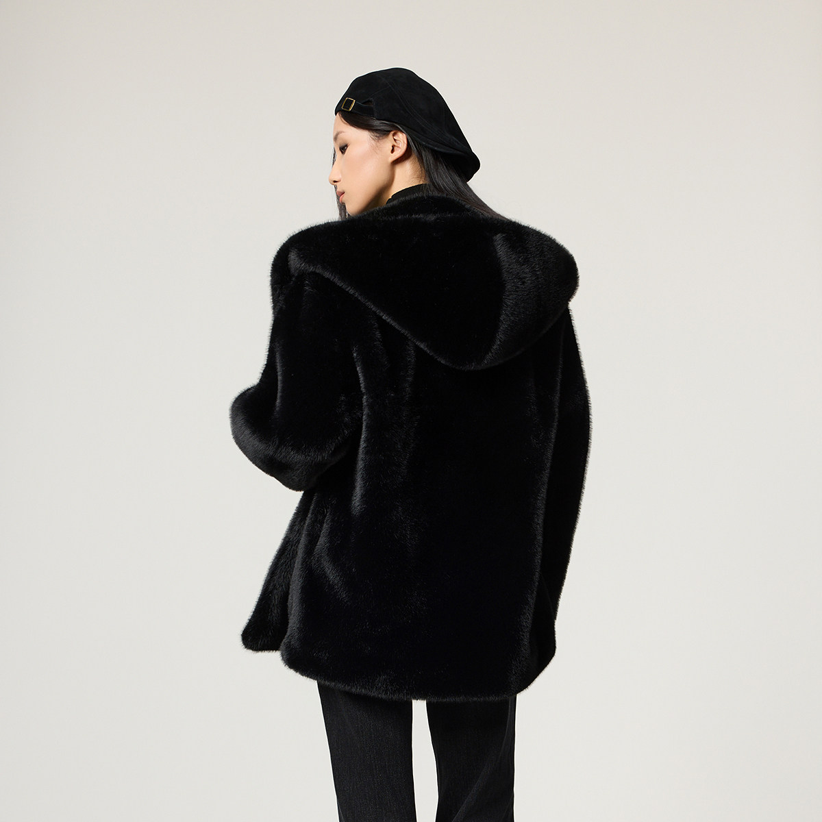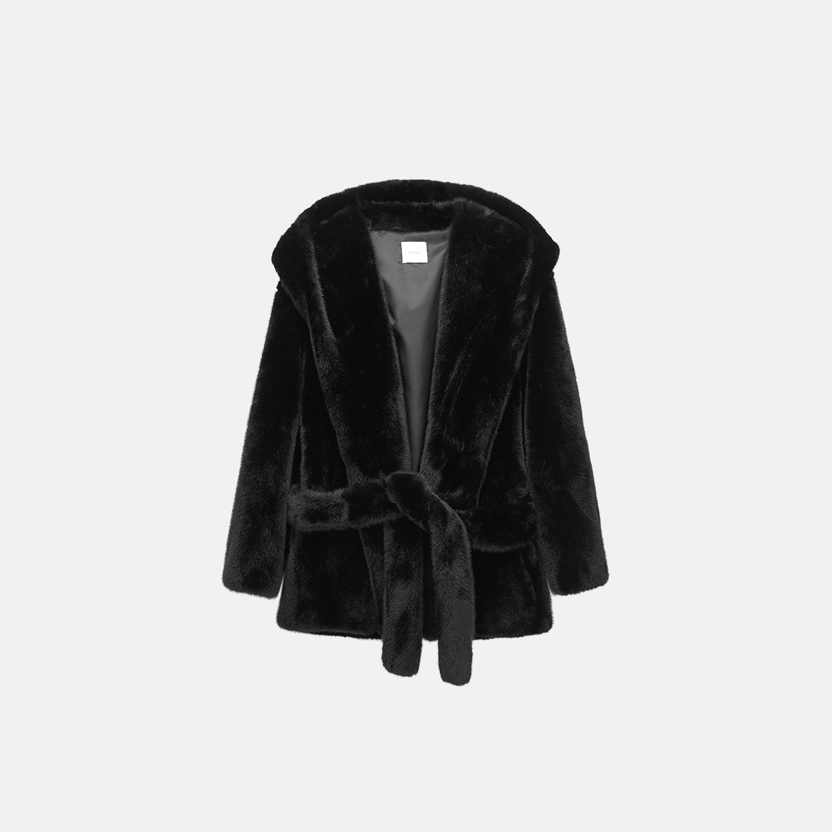 OCHIRLY欧时力 连帽袍式毛绒仿皮草外套女士中长款腰带冬