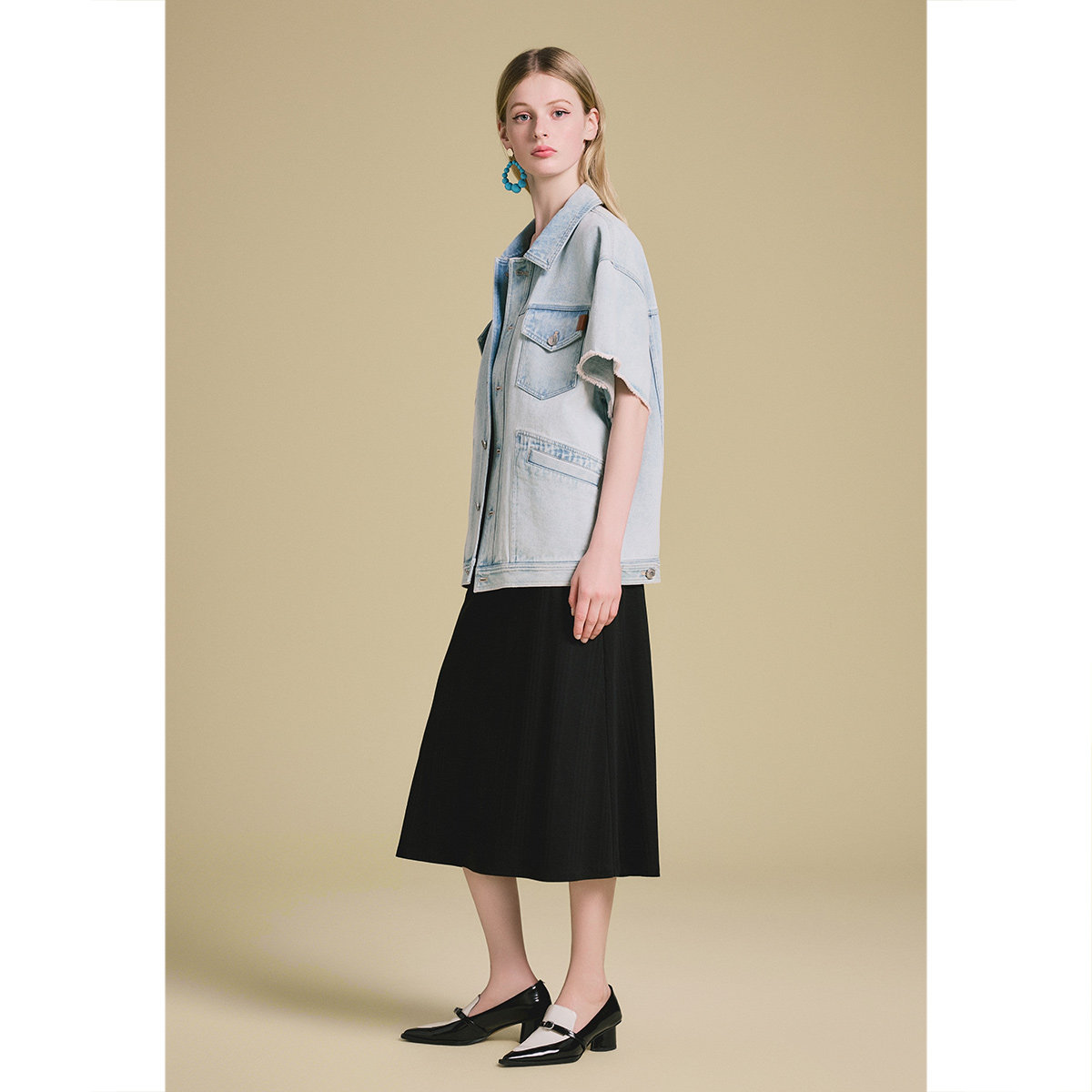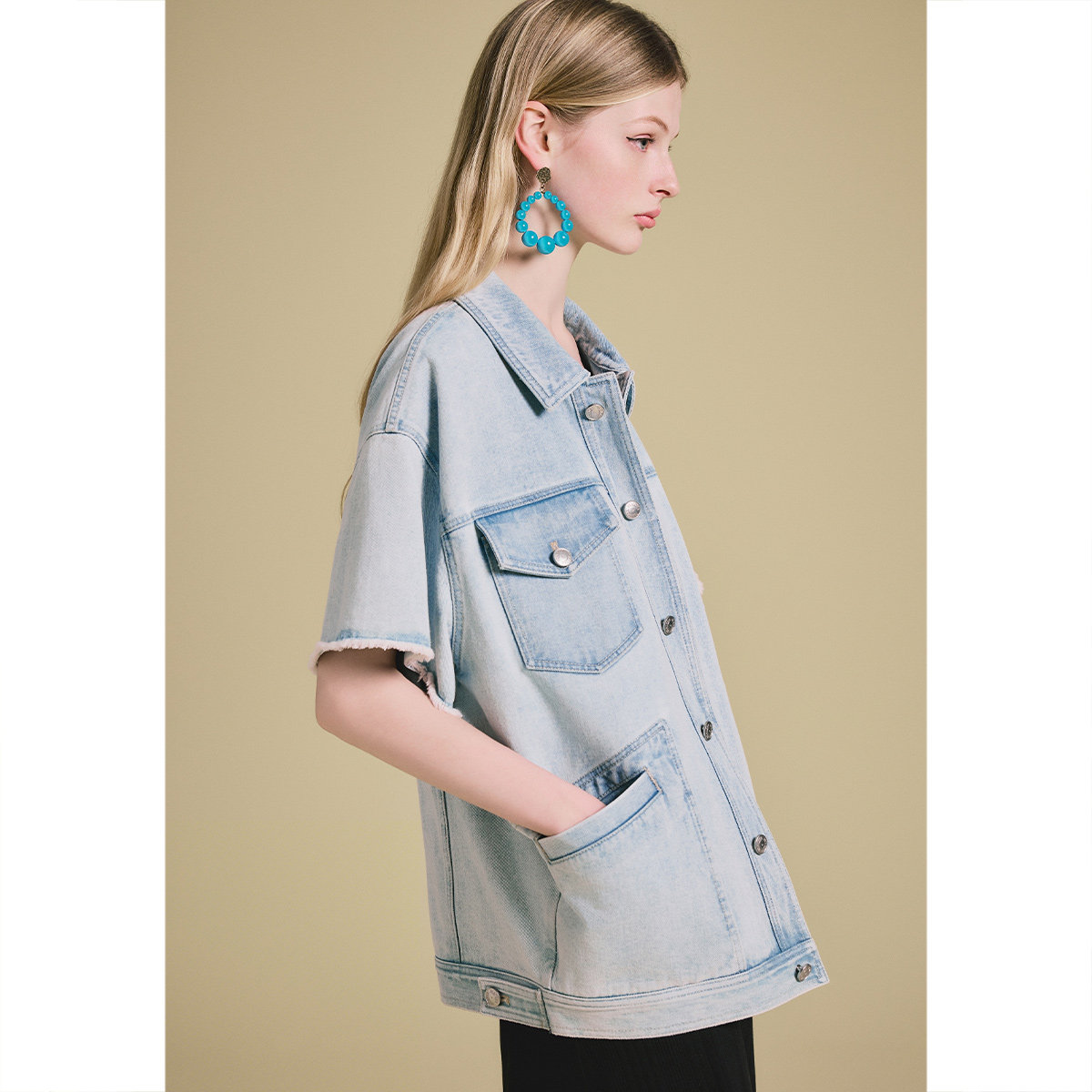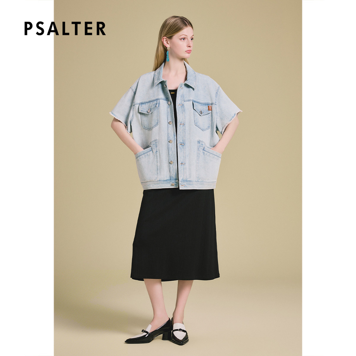 PSALTER诗篇时髦落肩短袖毛须边宽松水洗牛仔外套2025夏季新款