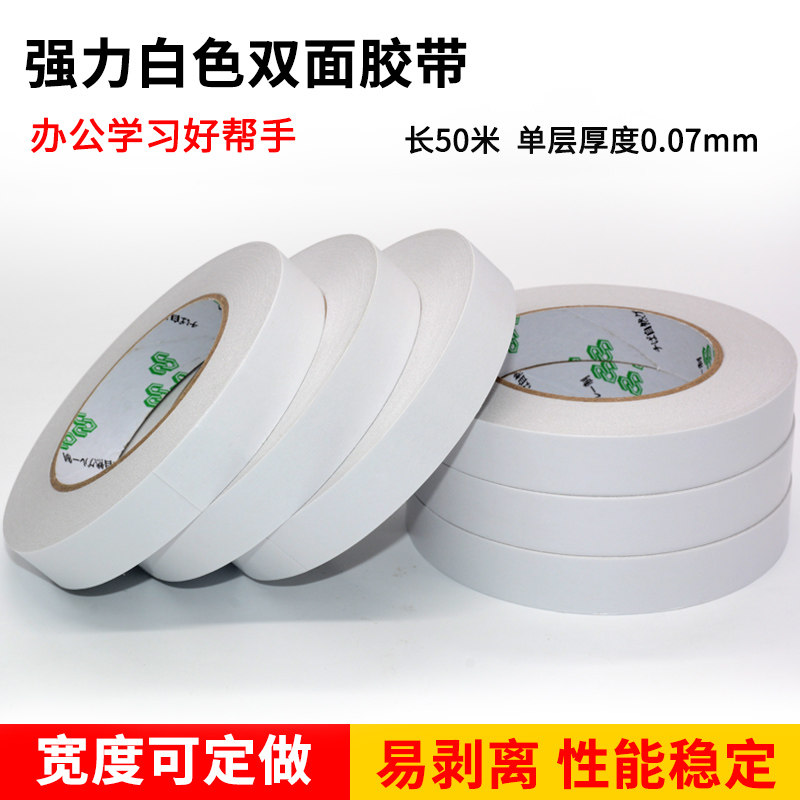 普通白色双面胶高粘度薄款强力固定学生儿童手工强粘普通办公文具用品超薄半透明白色热熔双面胶带