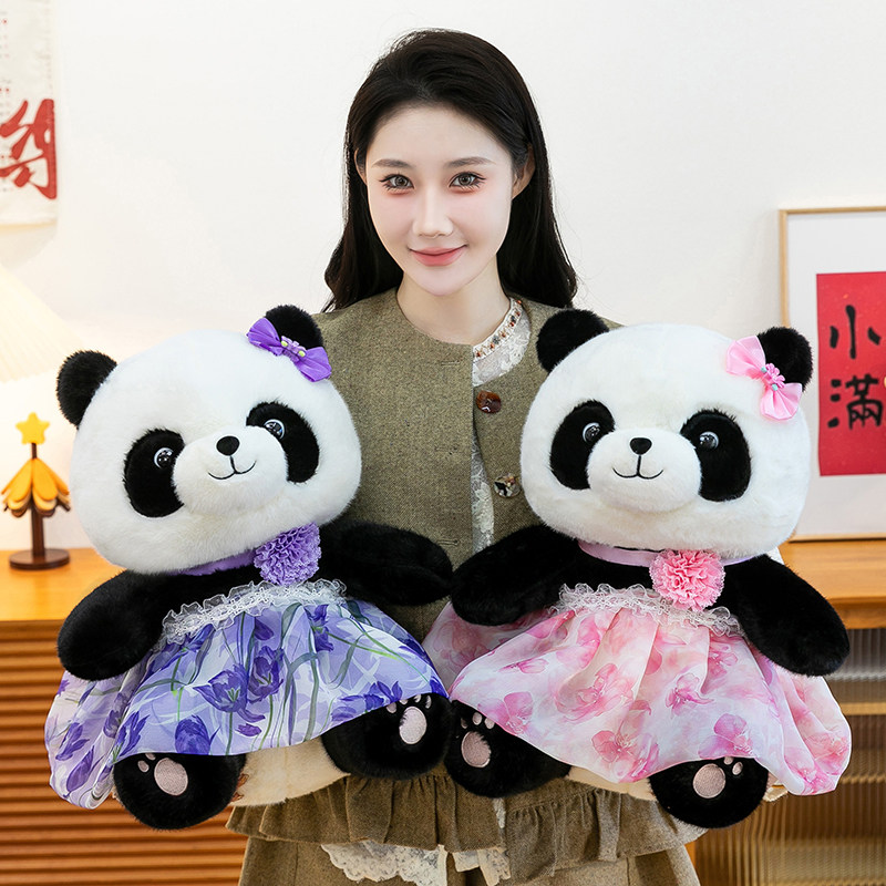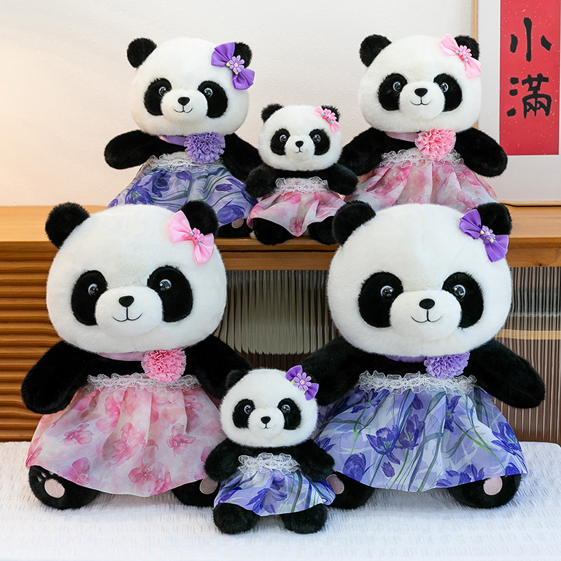 可爱公主裙熊猫毛绒玩具公仔玩偶花裙装饰布娃娃儿童生日礼物女生