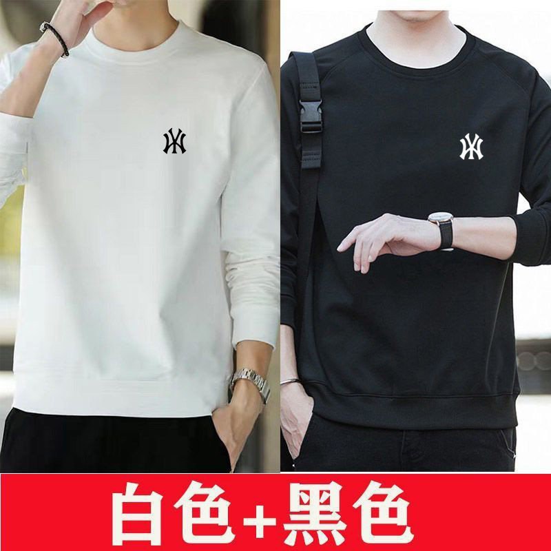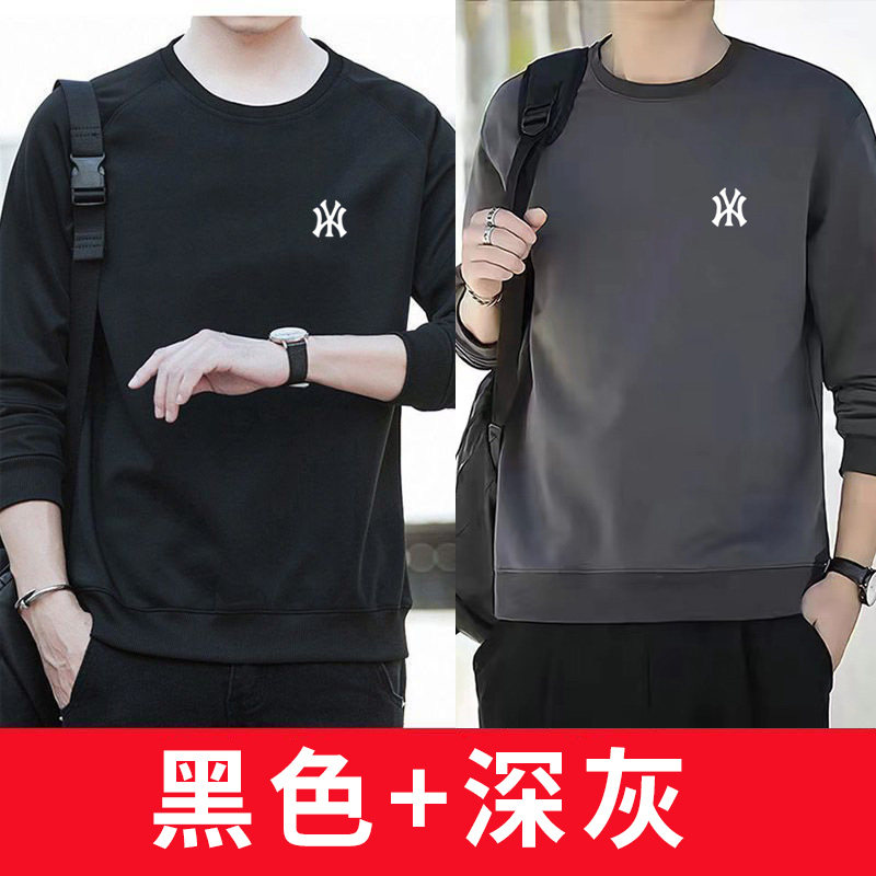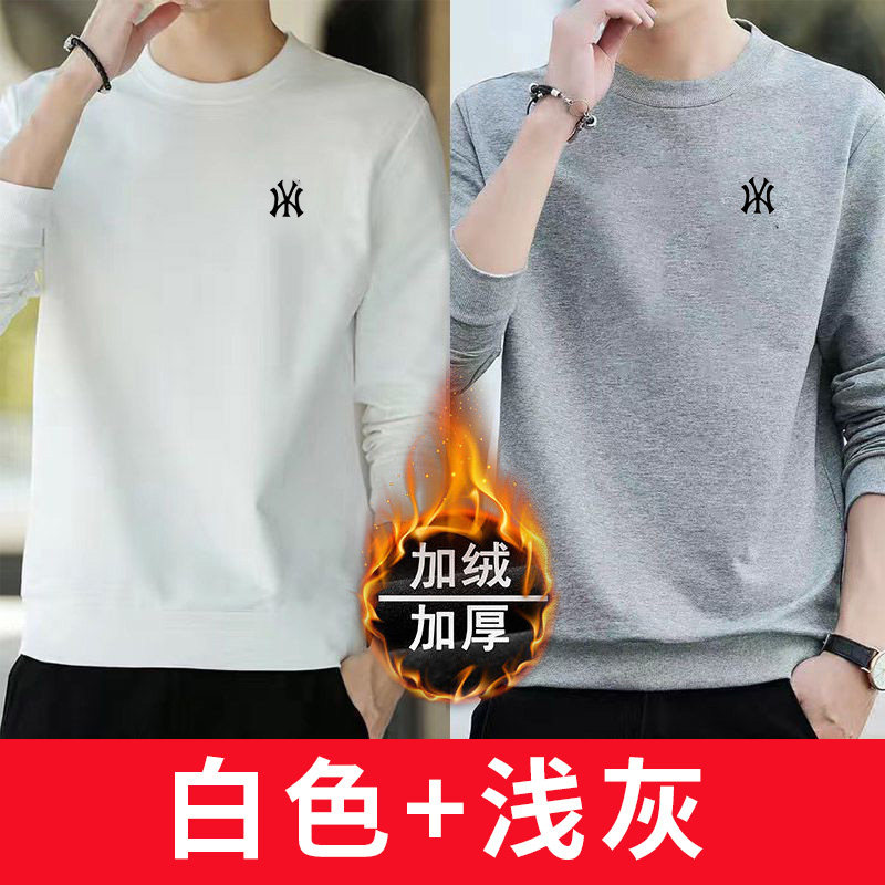 2件纯棉卫衣男士中年春秋冬季加绒长袖t恤秋衣打底衫内搭薄款贴身