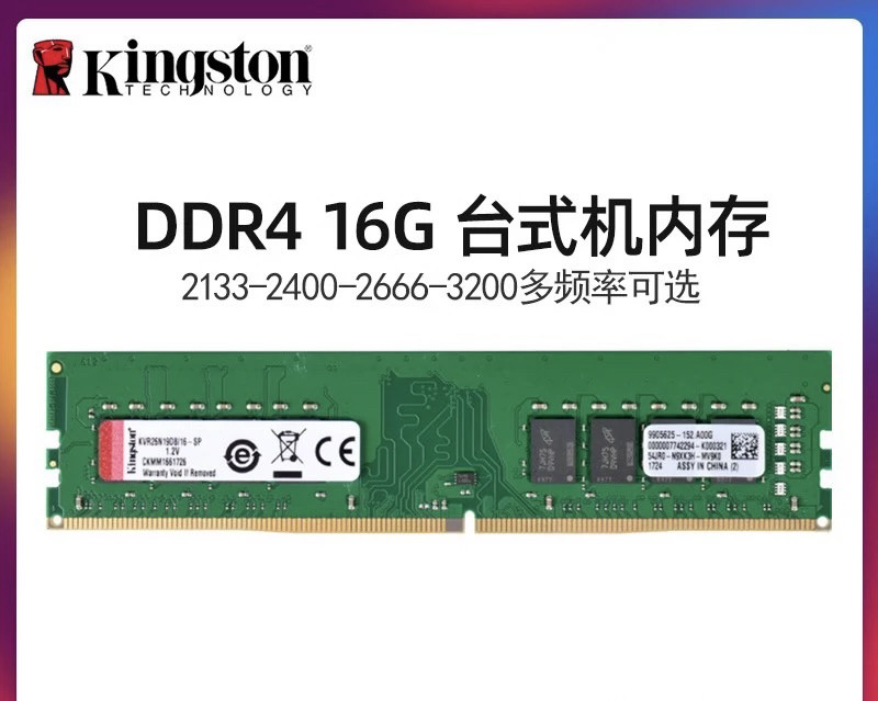 金士顿DDR4 8G 16G 2133 2400 2666 3200台式机四代内存条全兼容