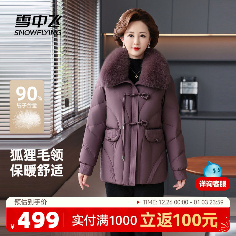 雪中飞2025冬新款女士羽绒服新中式盘扣狐狸毛领妈妈装保暖外套