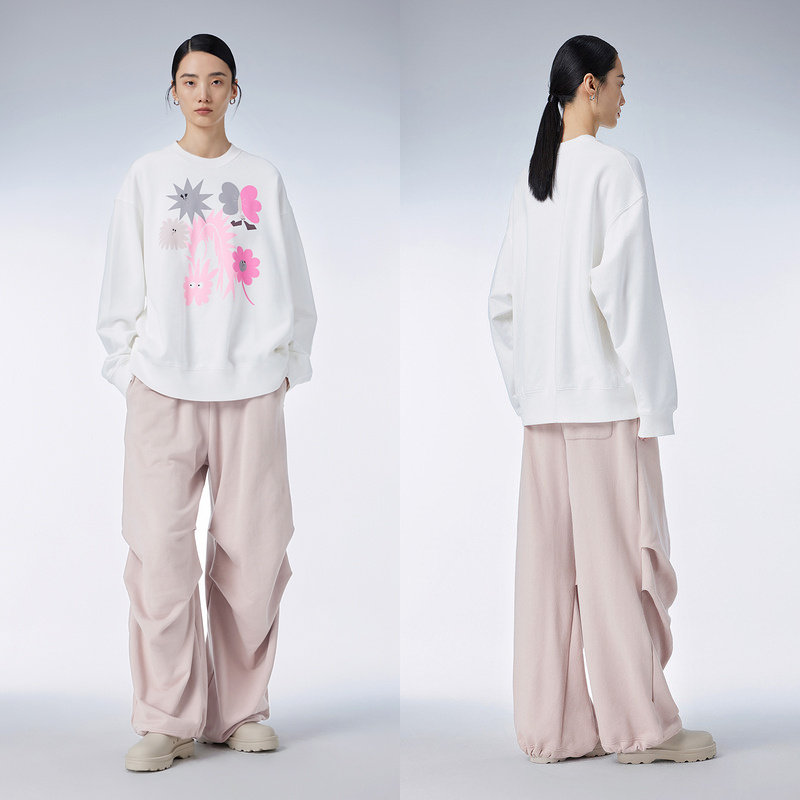 SIINSIIN加绒卫裤女2025新款阔腿运动裤休闲长裤冬季白色直筒裤子