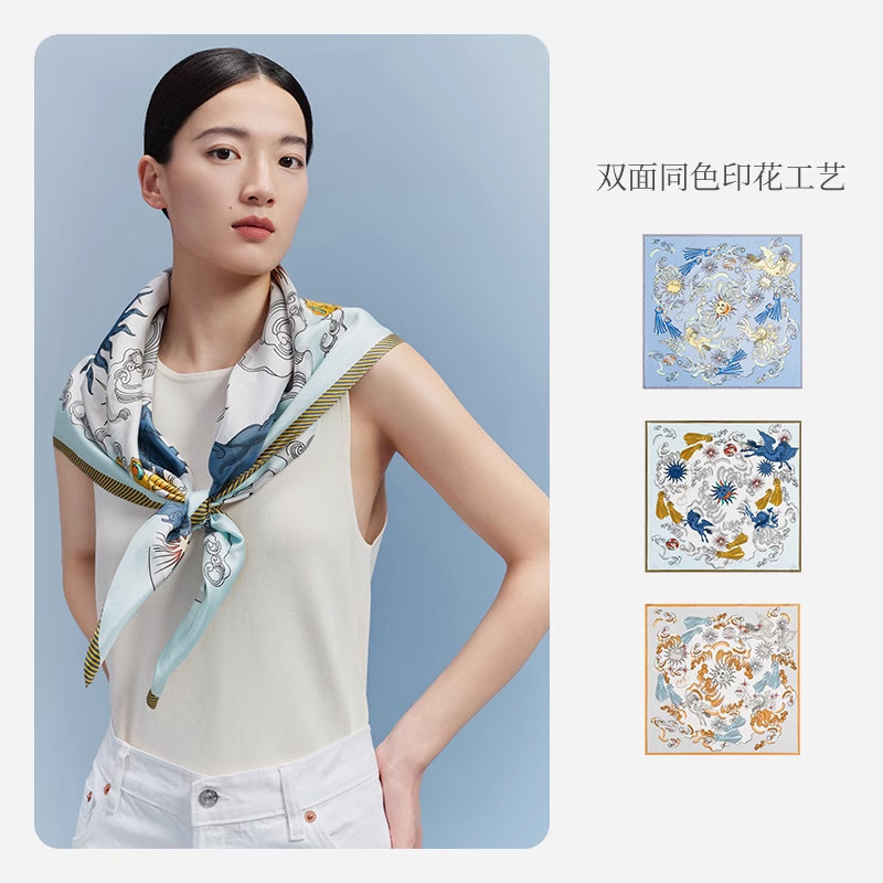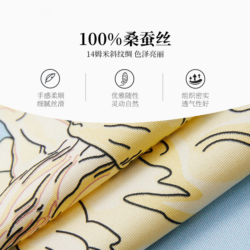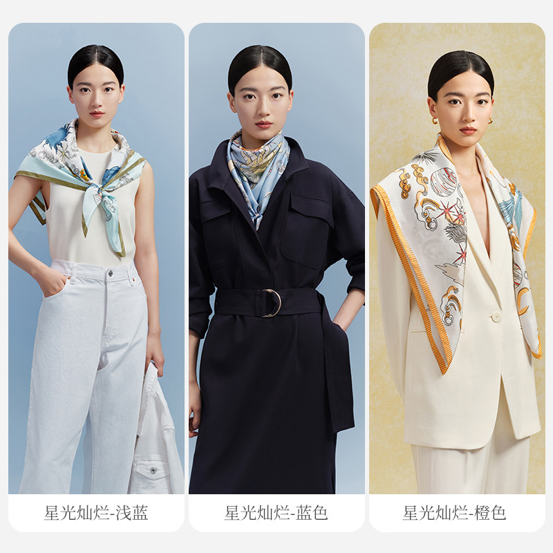万事利新款100%桑蚕丝卷边丝巾披肩女手绘涂鸦大方巾星光灿烂