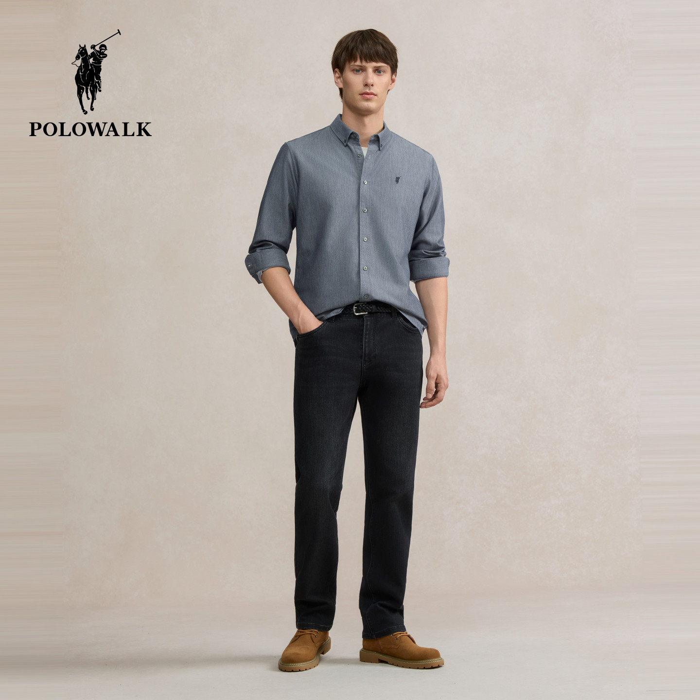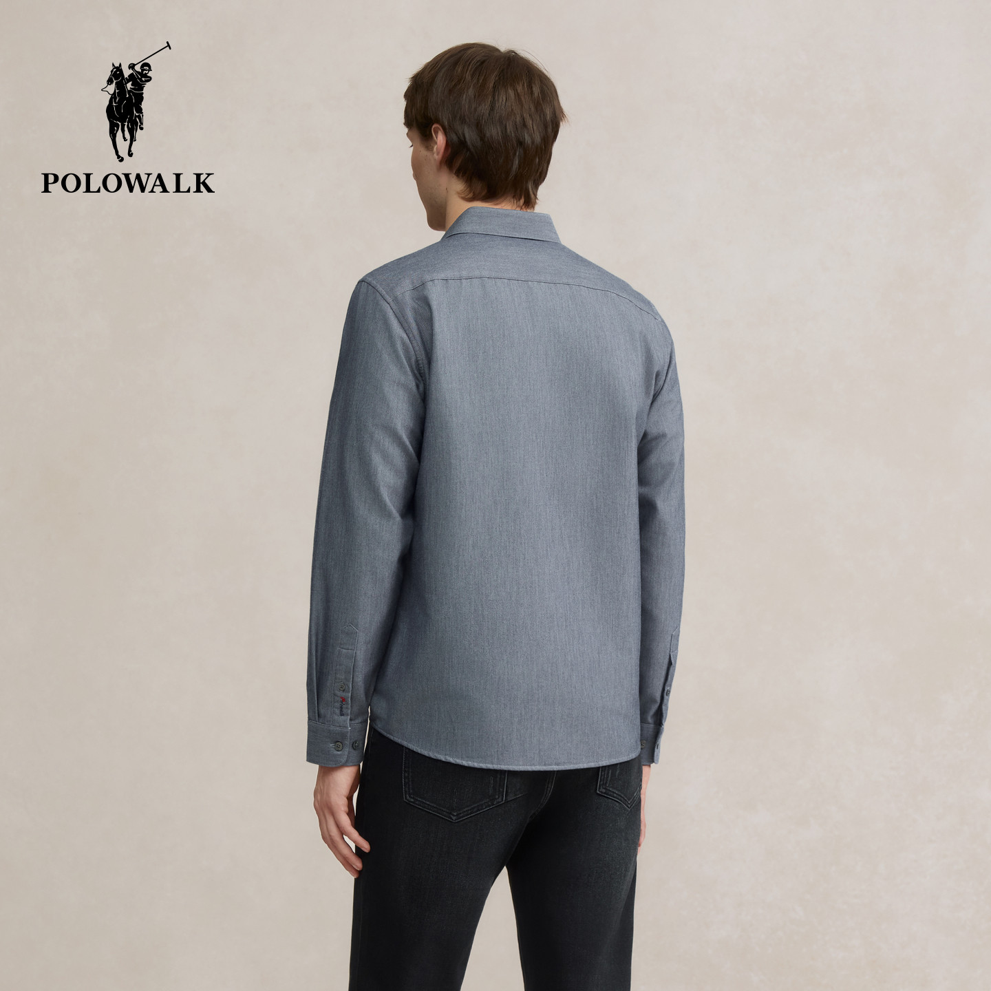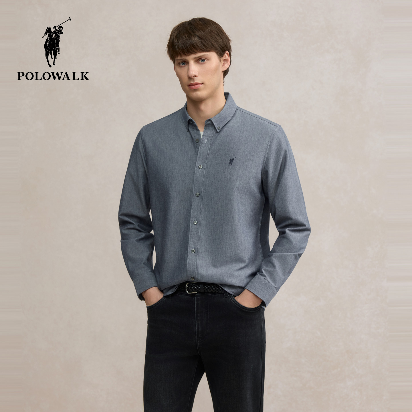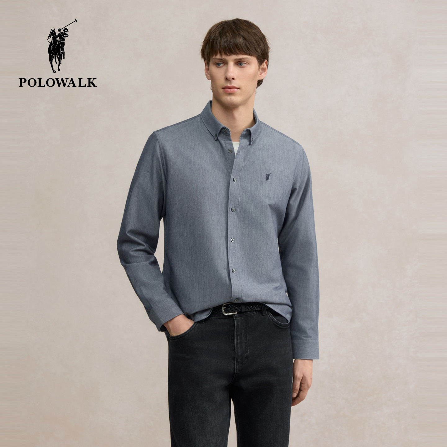 POLOWALK男式长袖衬衫2026春季新品简约商务风通勤长袖衬衣男装