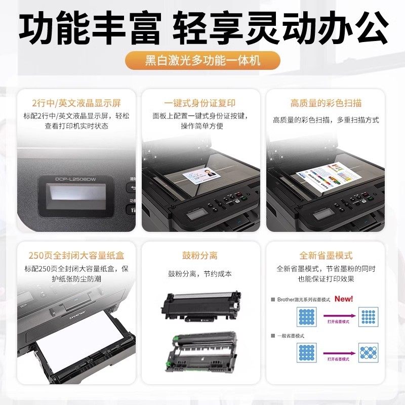 政府补贴兄弟打印机DCP-L2508DW/2548兄弟正品黑白激光打印无线WiFi自动双面打印商用办公家用可连接手机