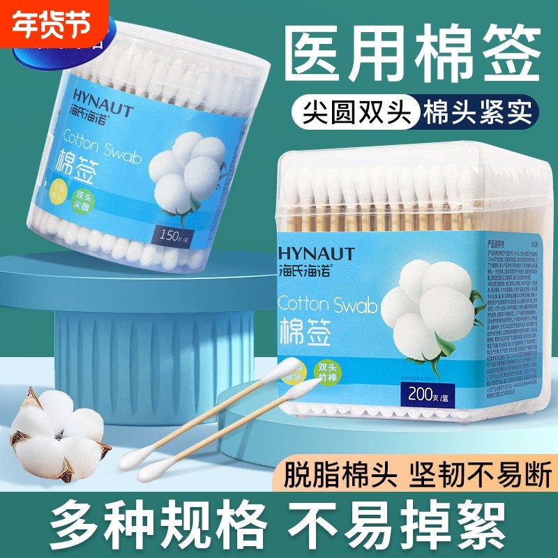 海氏海诺医用棉签一次性伤口清洁护理家用掏耳朵脱脂双头棉花棒