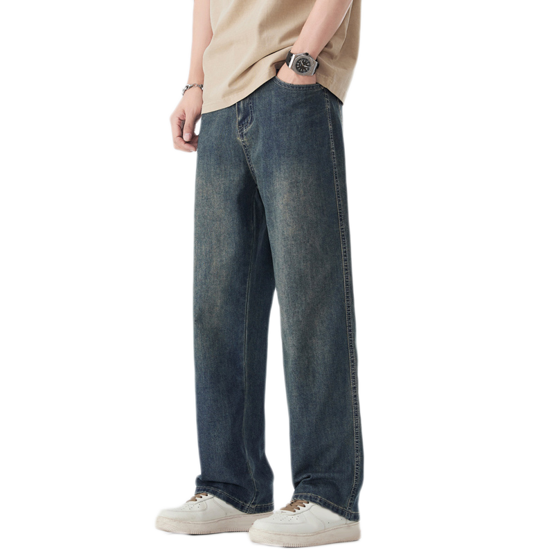 复古直筒牛仔裤男款春季宽松美式百搭裤子潮牌水洗做旧阔腿长裤子