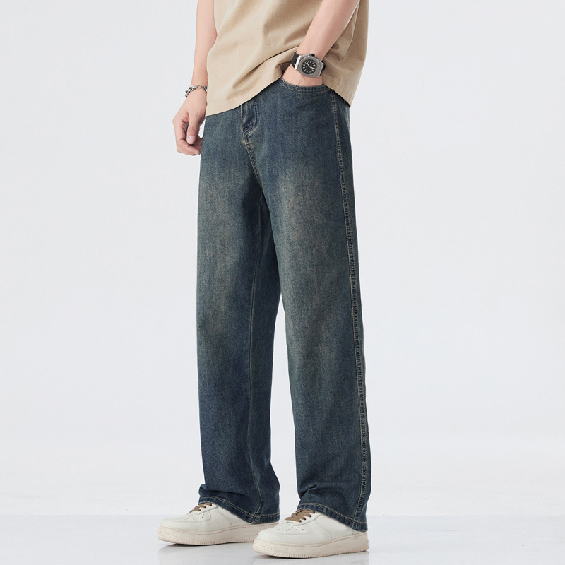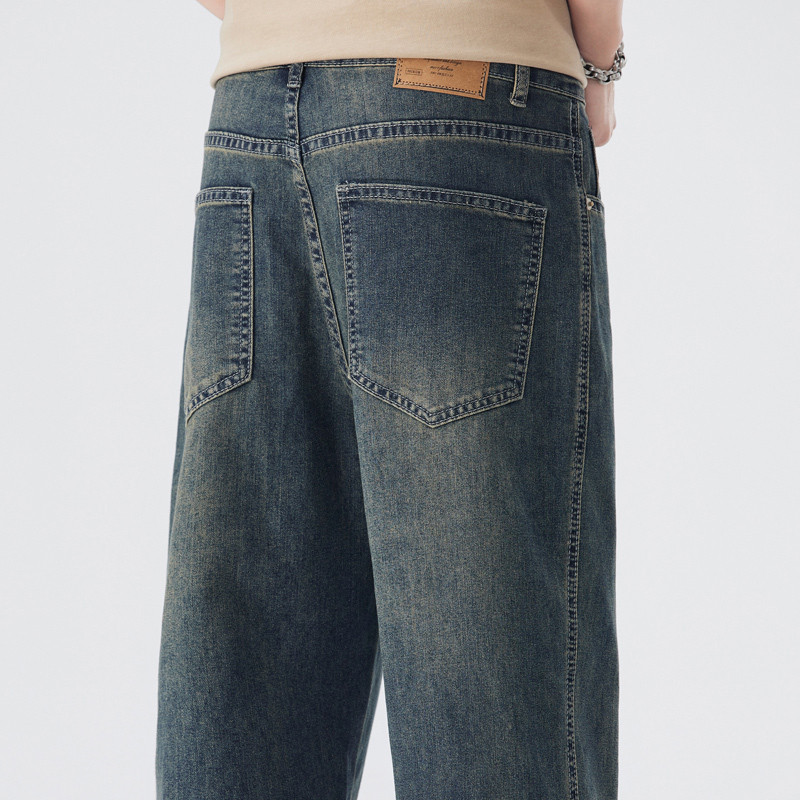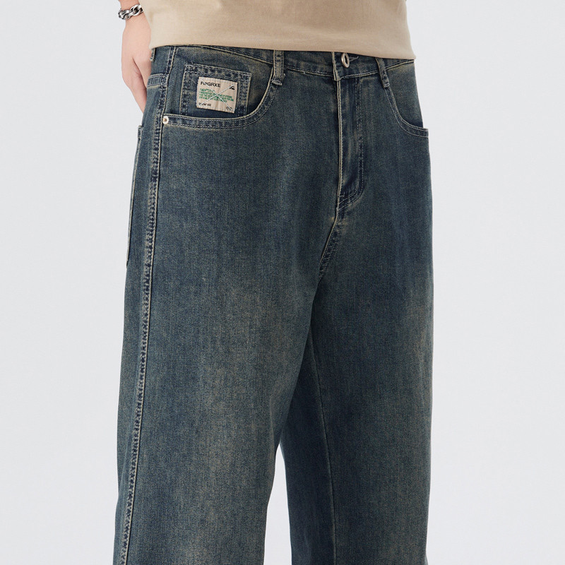 男款阔腿复古水洗潮牌时尚主图牛仔裤