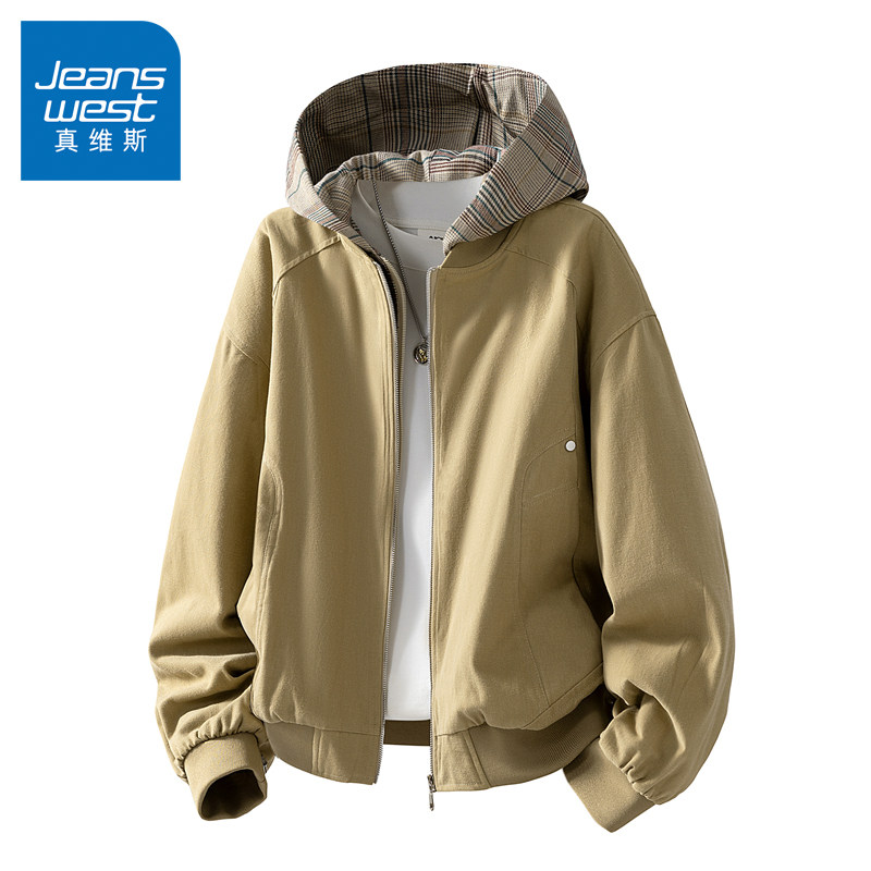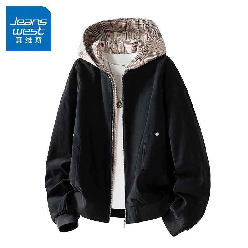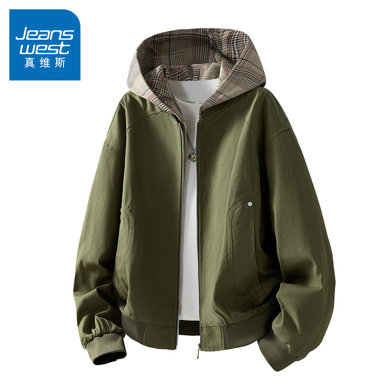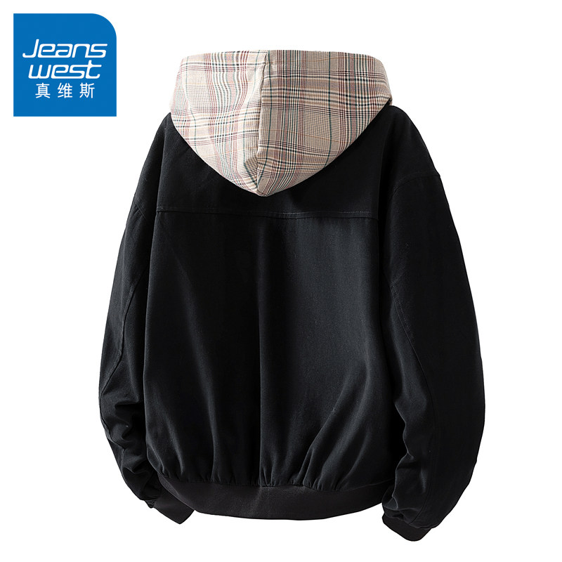 N5真维斯外套男2025秋季新款美式潮牌连帽拼接上衣服男士春秋夹克
