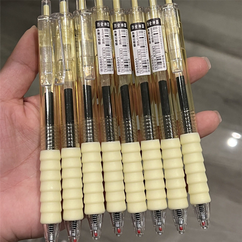 棉花糖学生速干刷题笔ins风高颜值按压式中性笔简约st头碳素黑笔