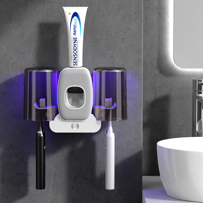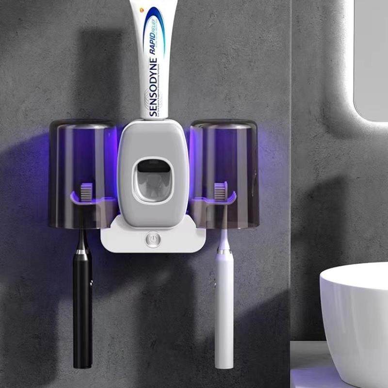 浴室免打孔牙刷架智能消毒情侣双人洗漱杯置物架壁挂式杀菌牙杯架