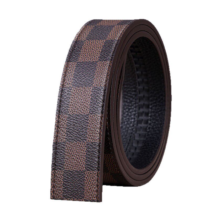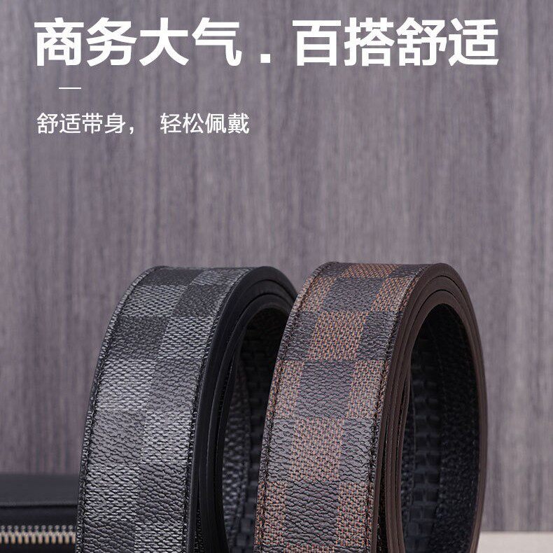 正品无头自动扣皮带不带头男士皮带纯带身商务裤腰带格子纹皮带条