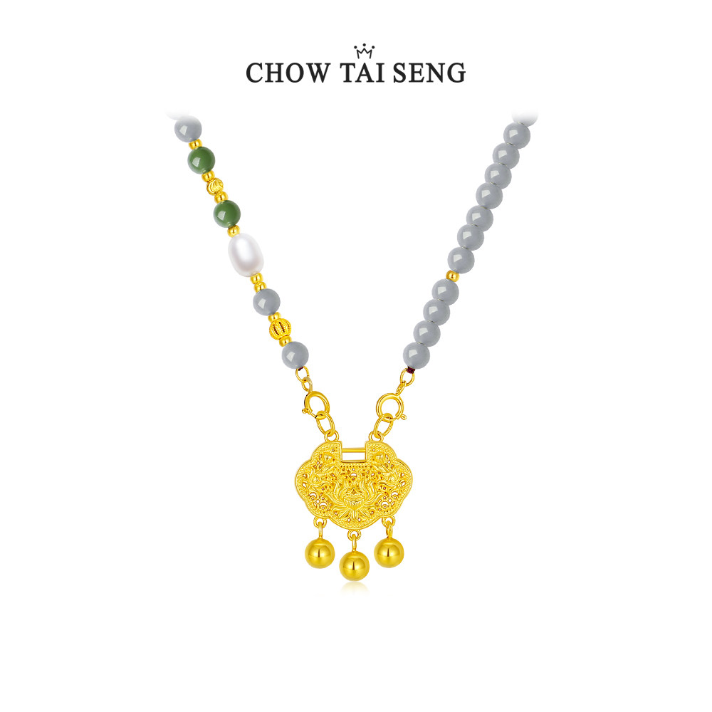 周大生福气平安扣项链女S925银玉髓吊坠轻奢本命年送妈妈生日礼物